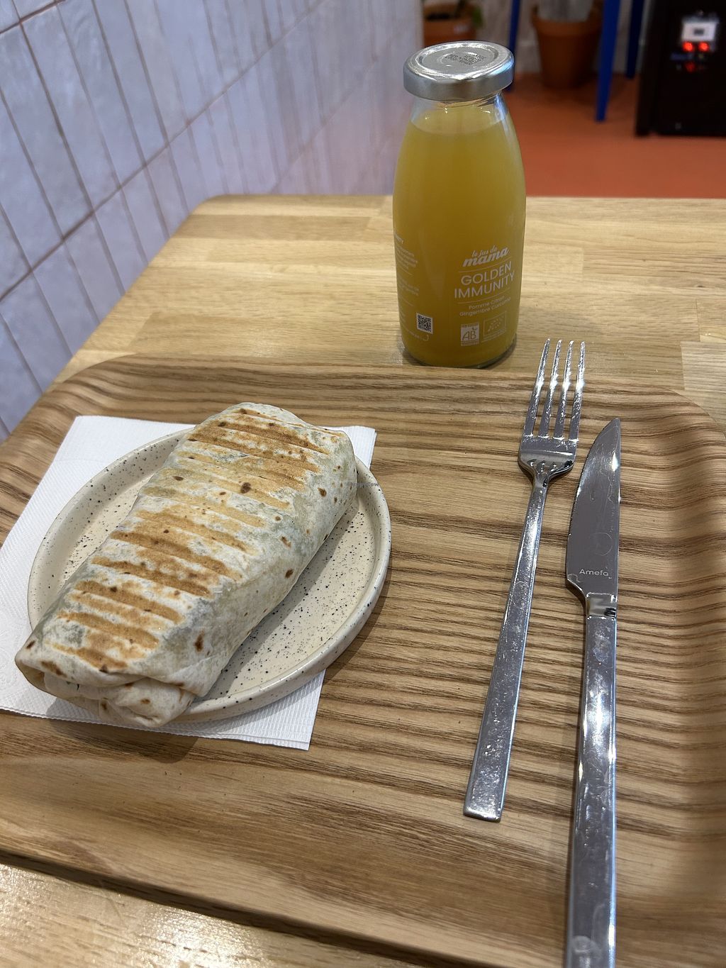 Between us we tried one of the wraps, and two of the meal bowls, and for dessert the tiramisu, panna cotta and a cookie. Everything was delicious! The staff were so lovely and helpful, describing everything for us as we don’t understand much French. 100% recommend!