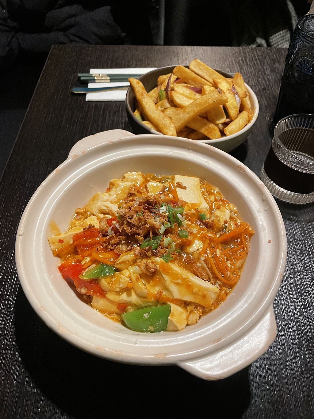 We also got mapo tofu, salt and pepper lotus crisps, and pineapple rice (very chargrilled, delicious flavour - I recommend it!). Finished with banana fritters 😍