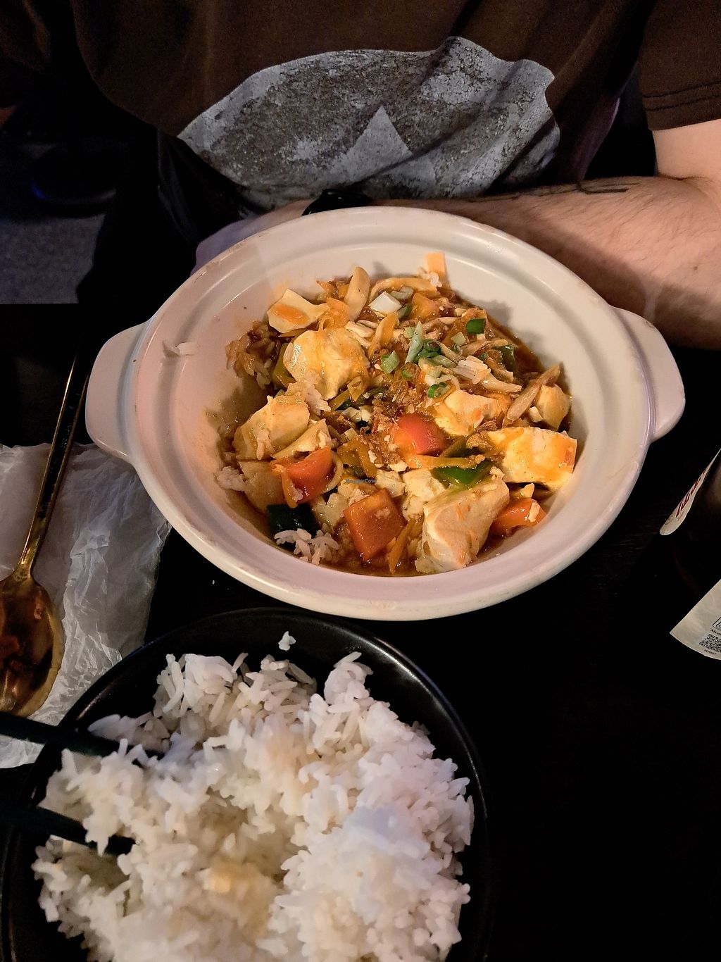 Fresh and savoury food. I got the mapo tofu with boiled rice. The tofu was silky and the sauce slightly spicy. The vegetables were crispy. They have gluten free options and desserts. The price is correct.
