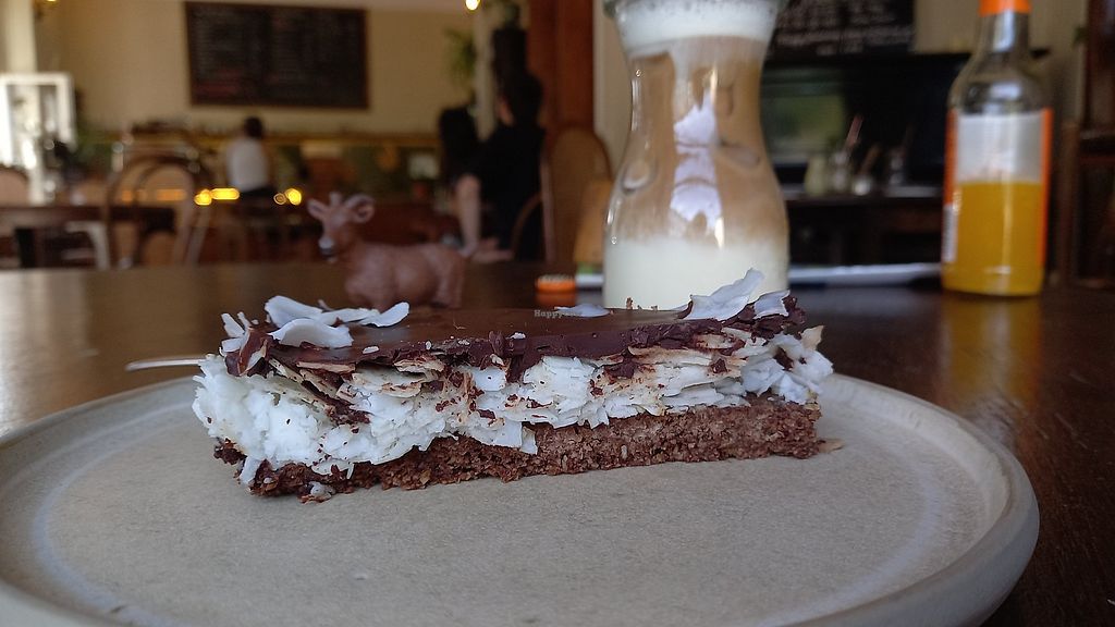 It's fully vegan, it's cozy, staff is super friendly the coffee is amazing and so is the array of cakes. Also offers savory goodies like soup, breads and quiche. My personal tip: Start with a quiche and then top it off with a slice of carrot cake.