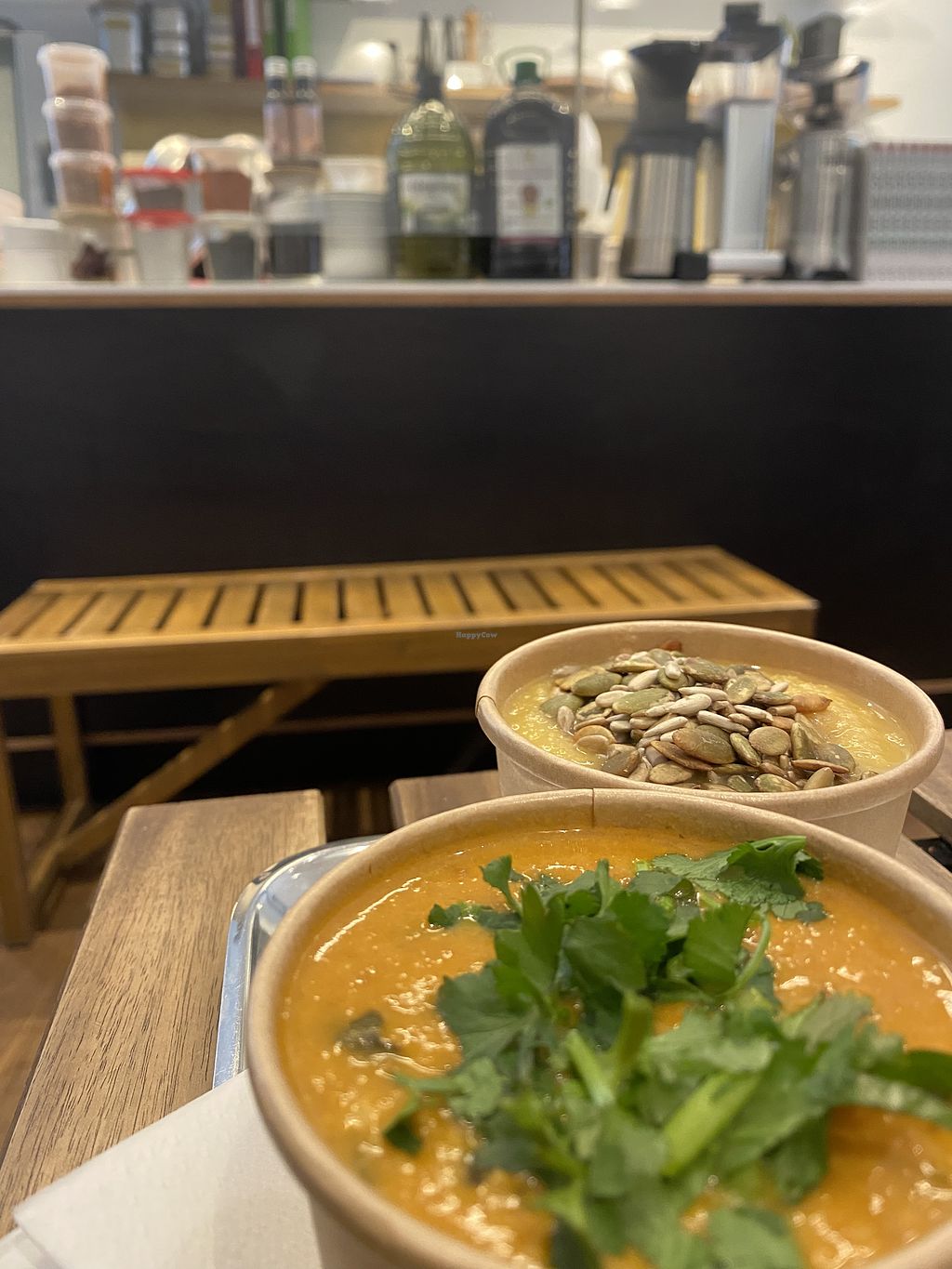 🌱The vegan parsnip soup with ginger & peanut soup with banana and sweet potato was so delicious that I had to purchase their cookbook . 📚
