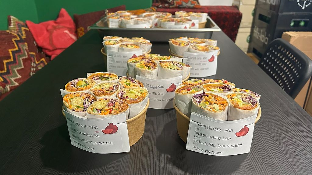 Angeboten werden cigköfte normal sowie scharf, kombinieren auch möglich, was wir auch taten. Ohne das scharfe Element hätte es vielleicht etwas langweilig geschmeckt, so war es optimal. Alle Toppings und Soßen sind vegan, nette Mitarbeiter. Überraschend und cool fand ich, dass das Brot frisch auf einer Art Crepemaschine aufgebacken wurde.