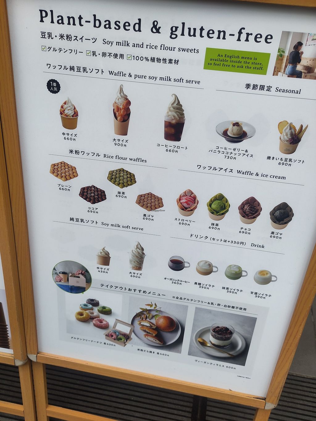 Awesome soft-serve. Toppings are free. Donuts are gluten free but still reasonably tasty; exercise caution they are served very HOT. Best part, this is one of only a very small number of all plant based shops in Fukuoka.
