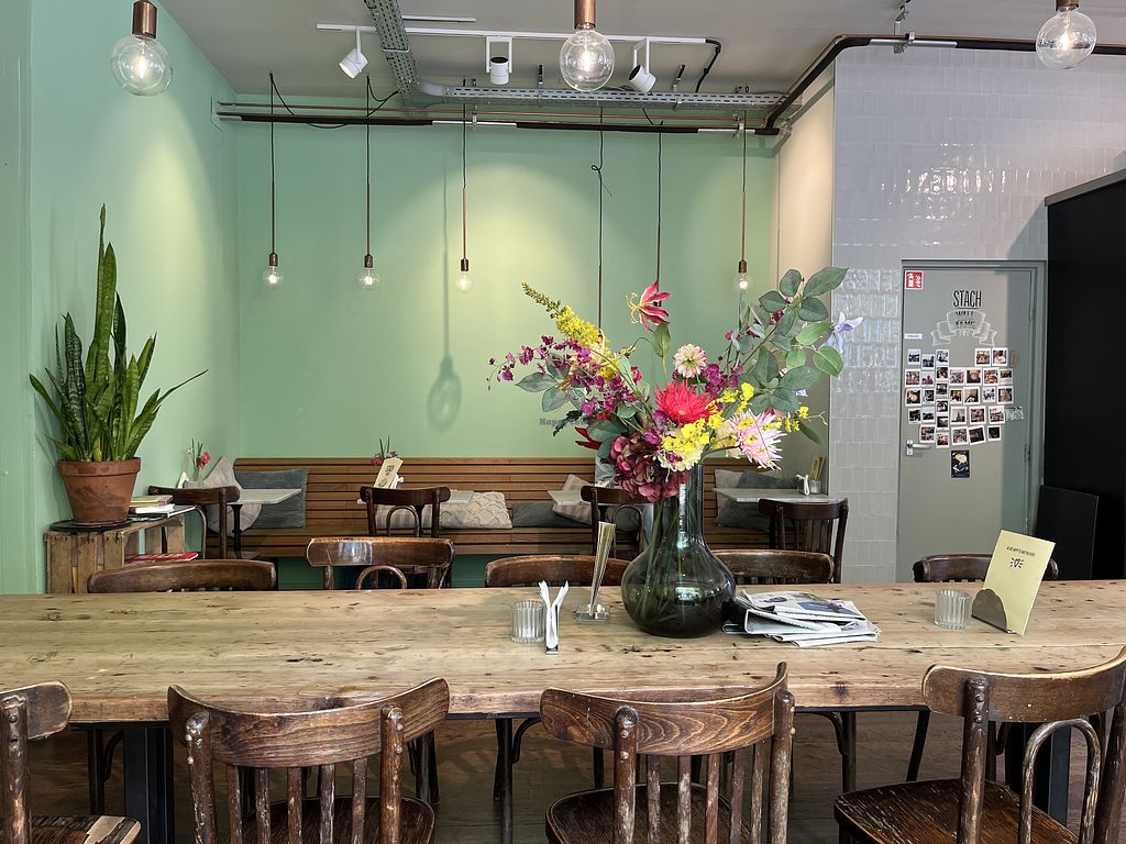 Great coffees, especially the iced latte with oat, quite expensive though. In the summertime they also sell the Oatly soft serve ice cream, with or without toppings (the 'disco dip' unfortunately is not vegan). Has also some vegan cookies, cakes and sandwiches.