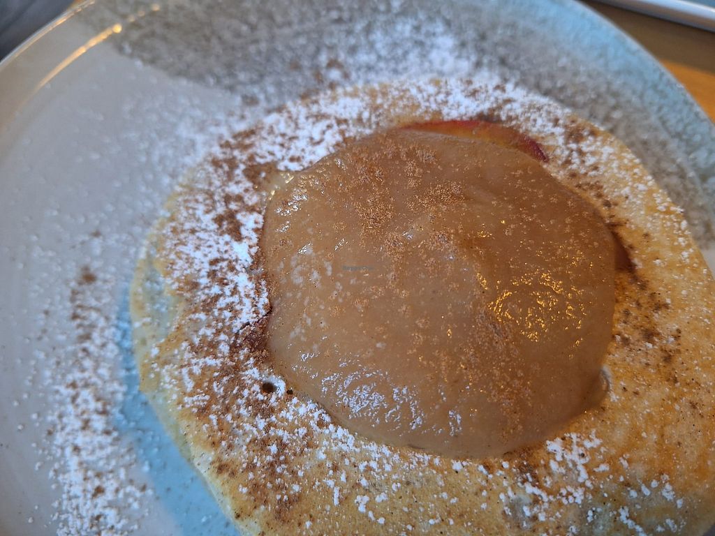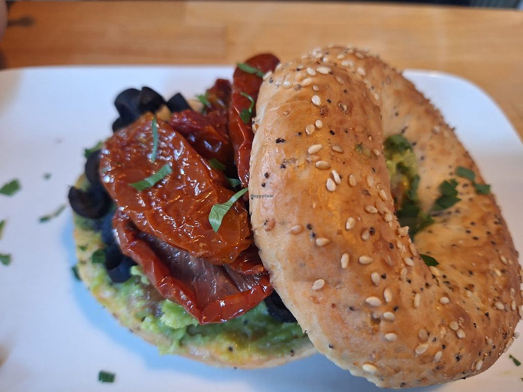 Popped in for breakfast. Got the last table (on a Tuesday so make sure to book a table if in doubt). Had an excellent bagel with avocado, dried tomatoes olives and fluffy vegan apple pancakes with cinnamon.