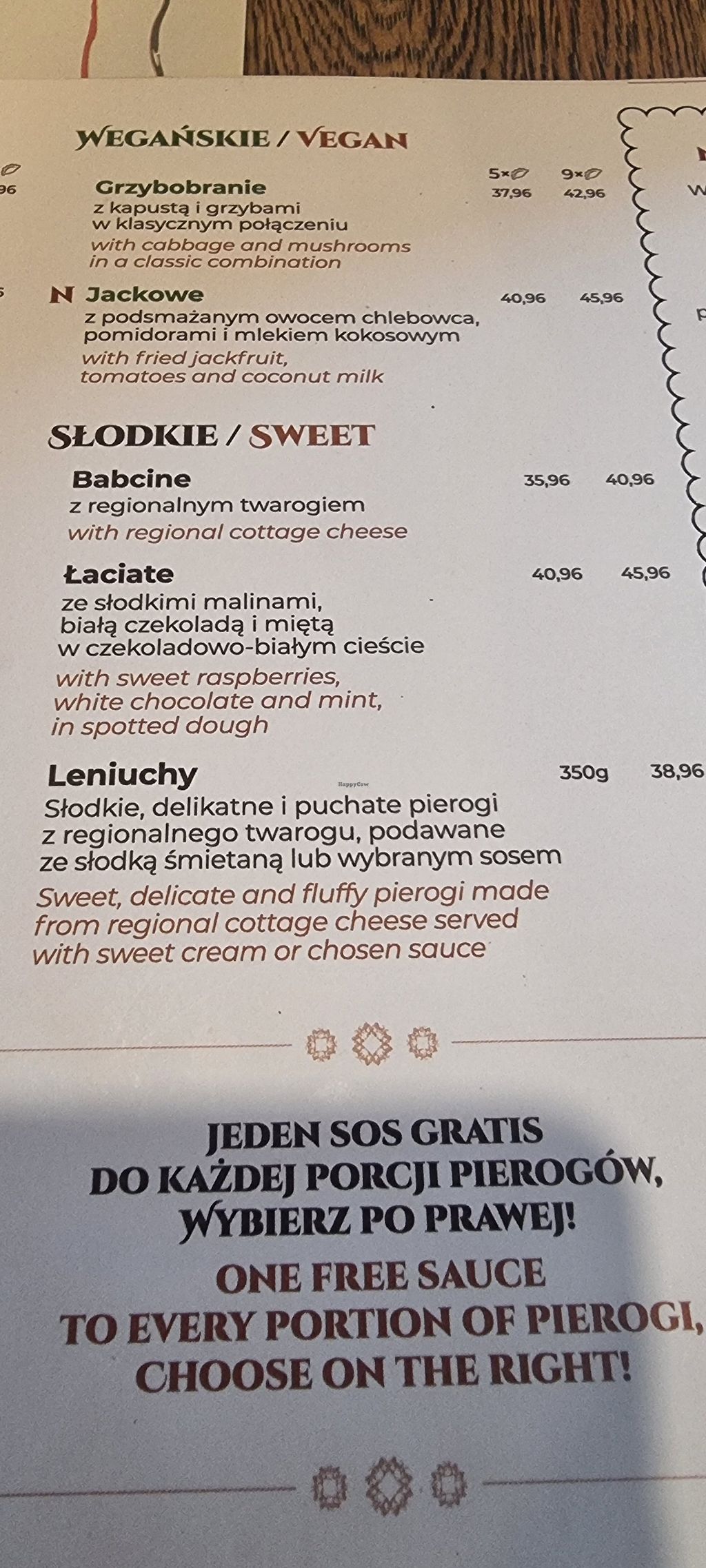 Traditional Polish menu with several vegetarian and vegan options. Generous portions, great flavours. Staff were very welcoming.