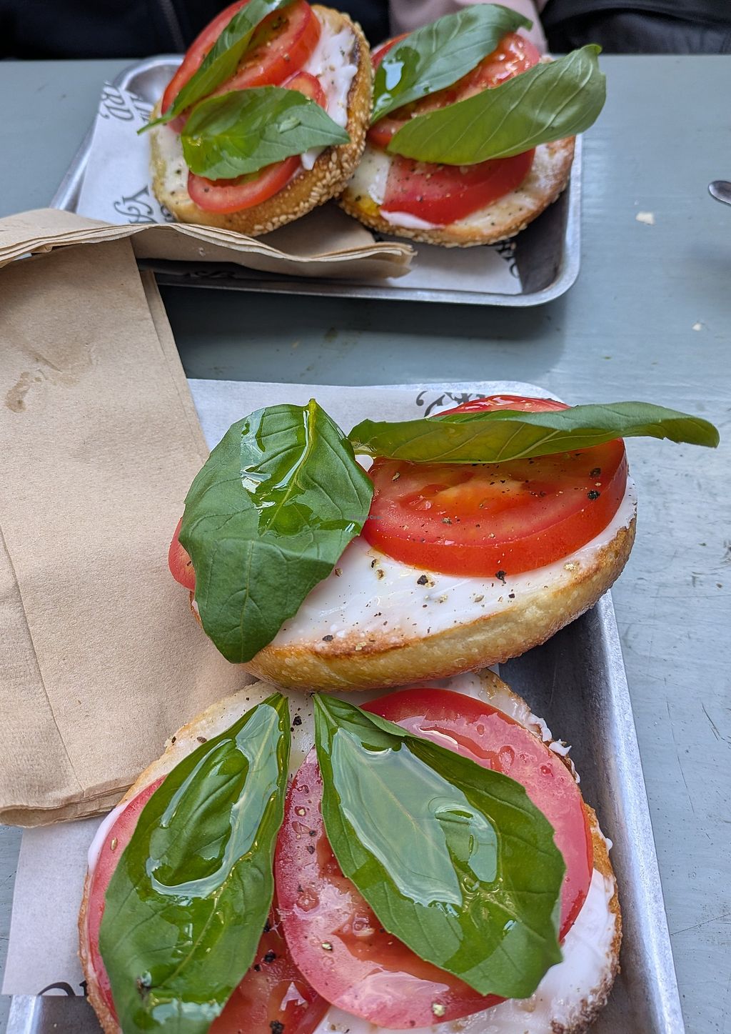 There was one vegan toastie that I got which was made with a red pepper paste and roasted veggies. It was really tasty and the bread was super crispy and nice! Would've preferred some protein in there too like tofu or falafel (just as a lil feedback) but overall really enjoyed it😋