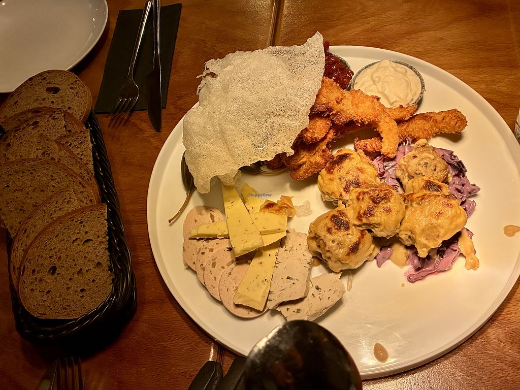 This cozy spot offers both traditional german favorites made vegan, plus some unique fusion dishes. The appetizer tasting platter is a MUST and was our favorite thing on the menu. The stuffed mushrooms and fried mushrooms were particularly amazing. The main courses we tried were the schnitzel and the Saurbraten aus Seitan, which was my first time having german potato dumplings (yum!). The main plates were a bit heavy and dense, but perfect for a filling meal. Would absolutely be back!