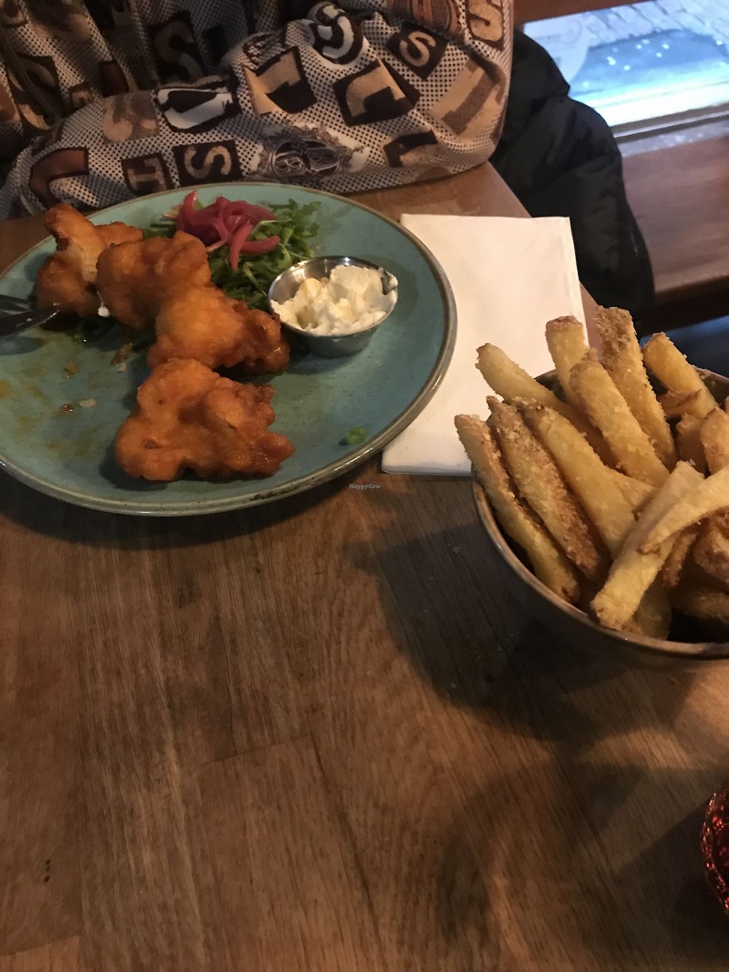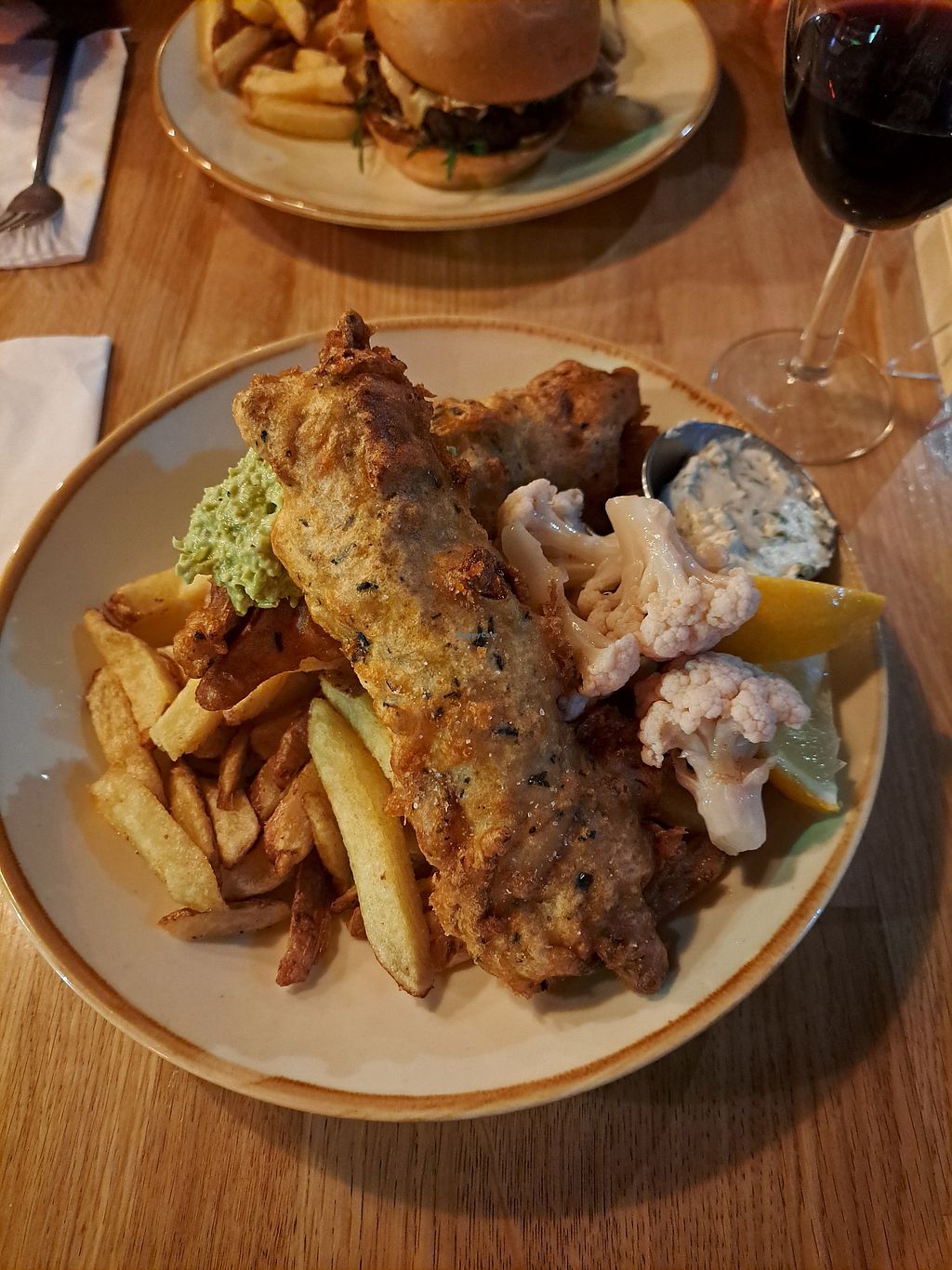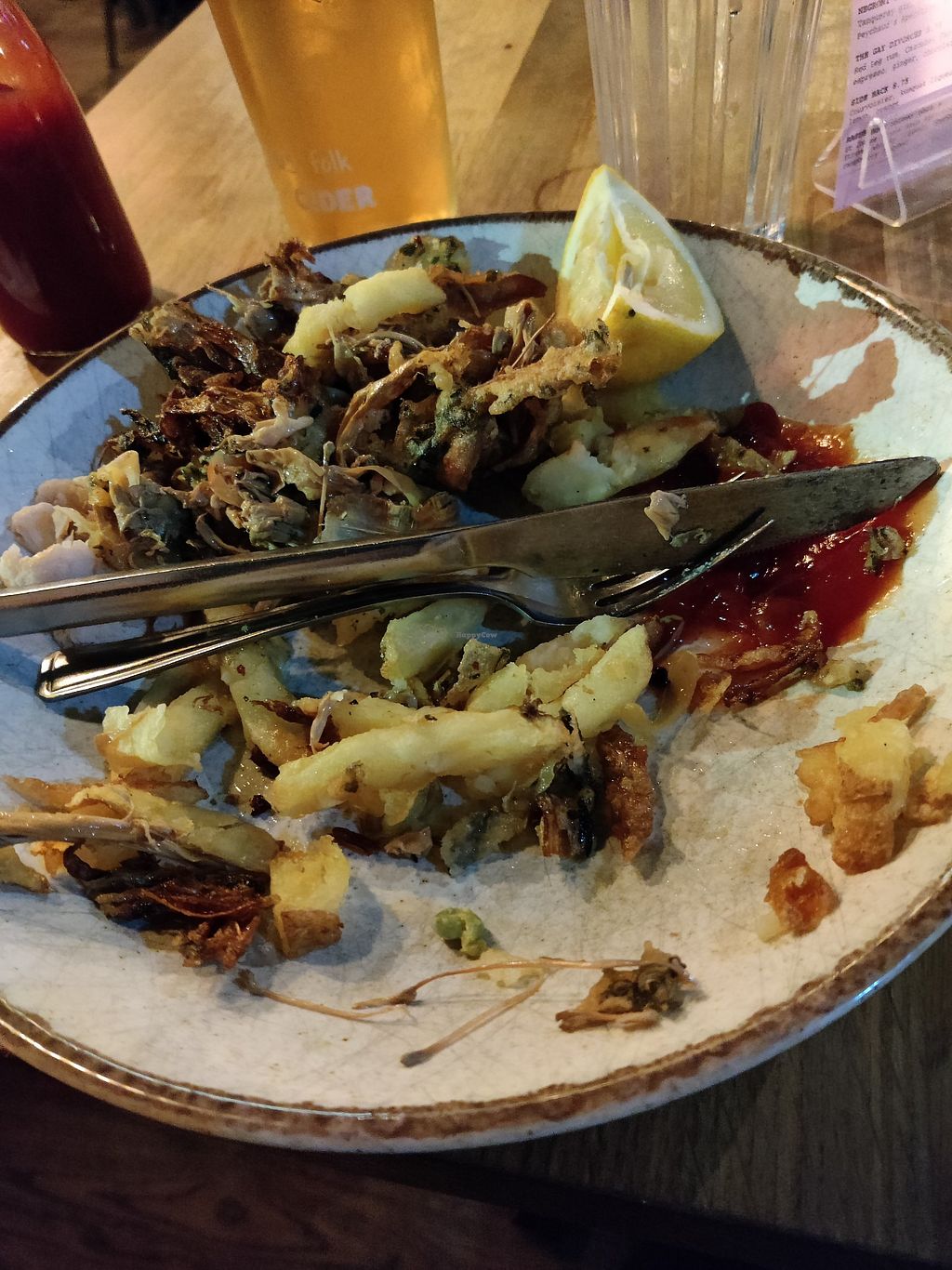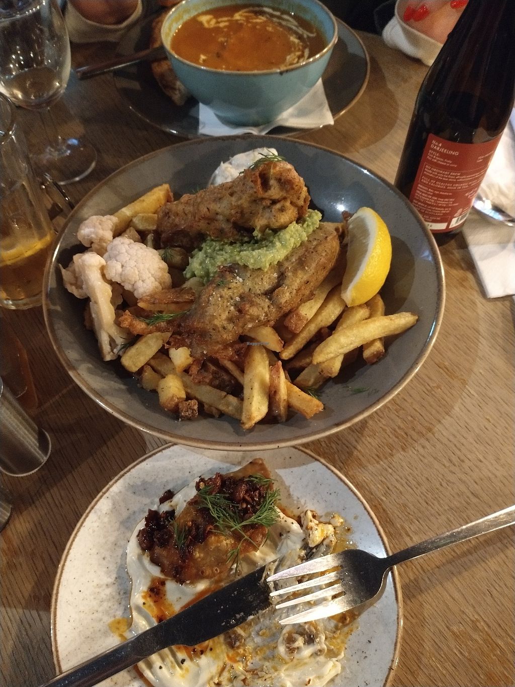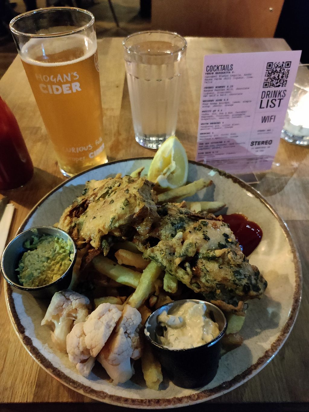 Chip supper, cooked to perfection (cauliflower was kind of pickled, ab…