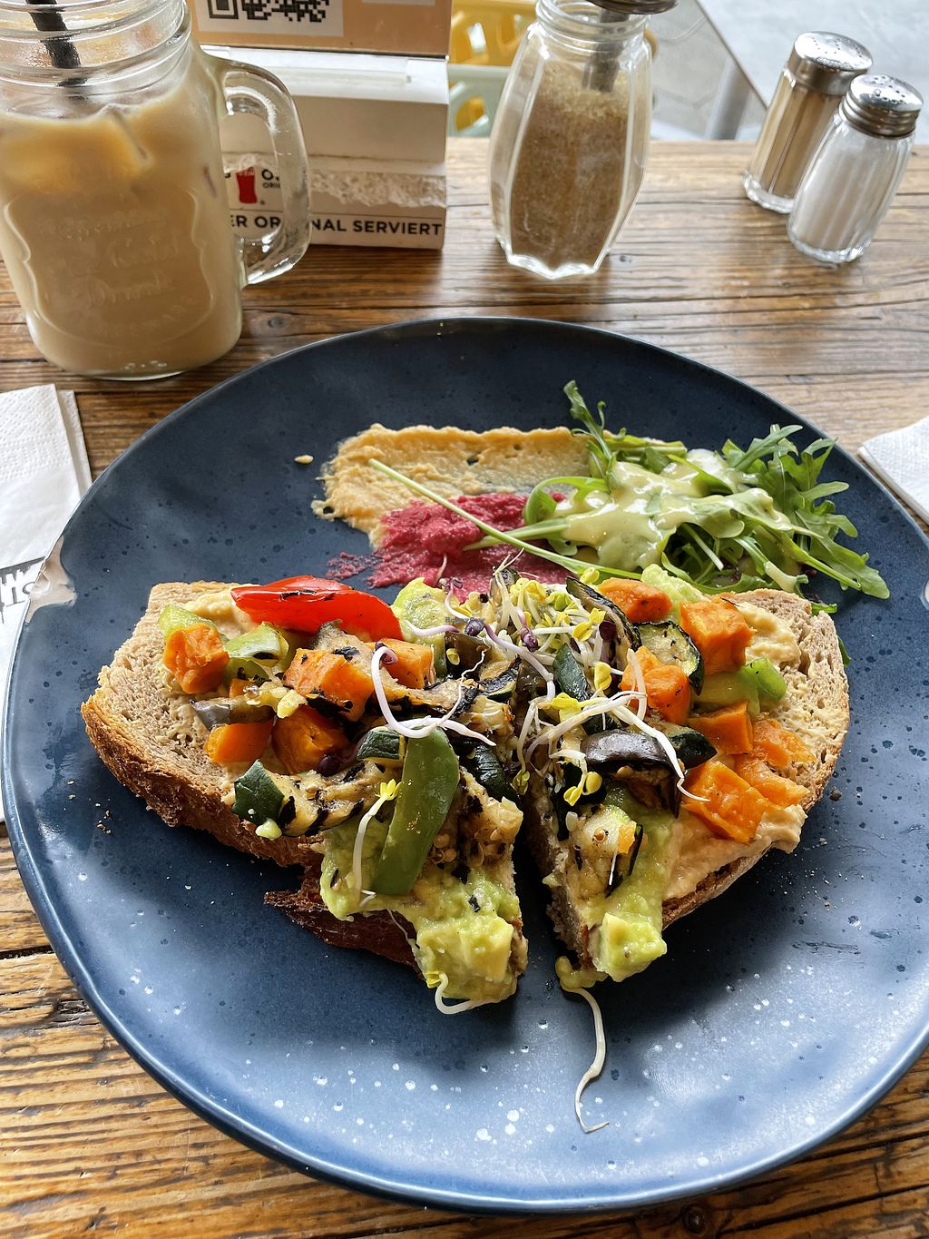 Süßes Café, tot freundlicher Chef, vegane Optionen aber eher „Standard“, den man auch in Kleinstädten kriegen würde. Brot mit Gemüse und Hummus. Trotzdem aber lecker