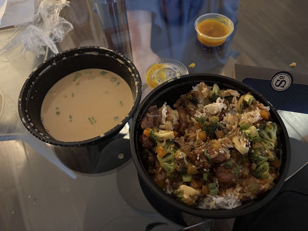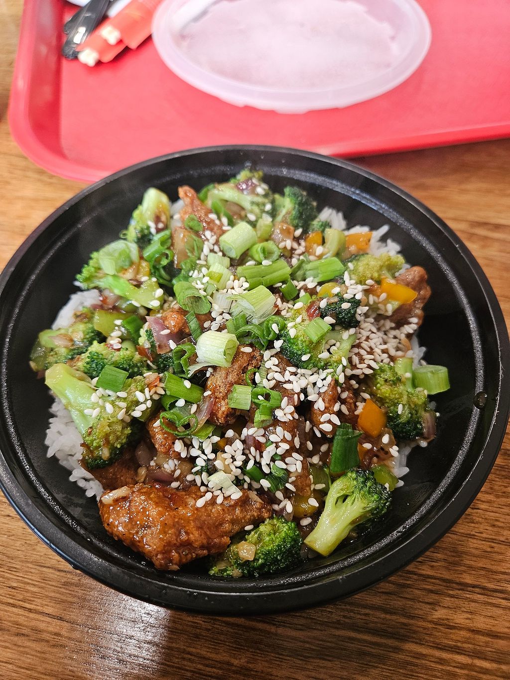 My husband and I tried out this fantastic establishment while on vacation in Atlanta. Number one, the atmosphere is wonderful. Everyone was smiling and friendly. You order on a tablet up front. We each built our own box, mine with rice noodles, shrimp and veggies with pineapple sauce. He chose rice, shrimp and veggies with the Mongolian sauce. I also had a delicious pear juice. We were totally blown away with the flavors, especially the shrimp! Everything from the food, to the people, music and decor was A !