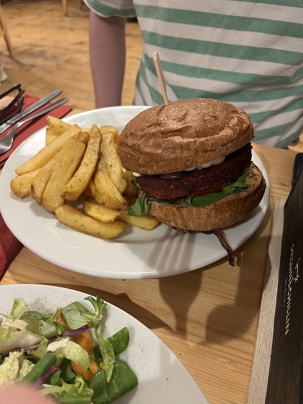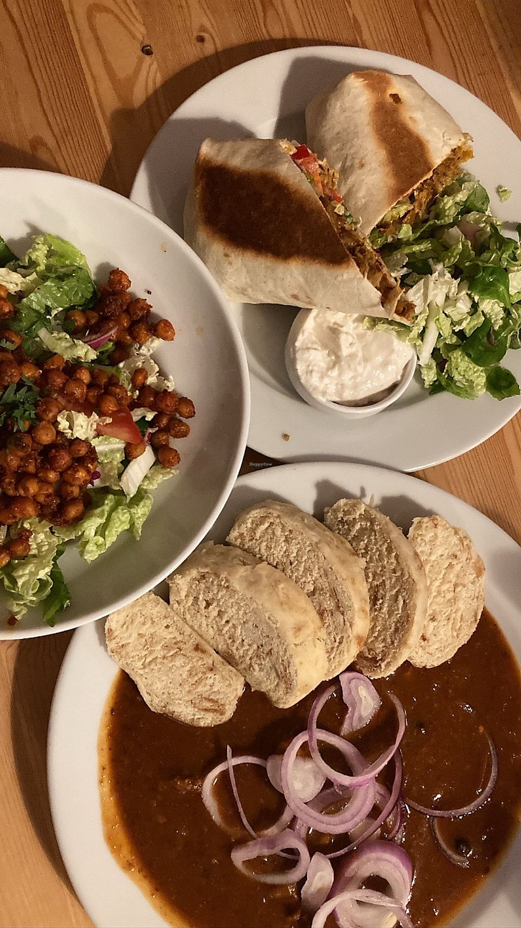Wrap: tasty. Goulash: no vegan meat, not very tasty either. Salad: oil…