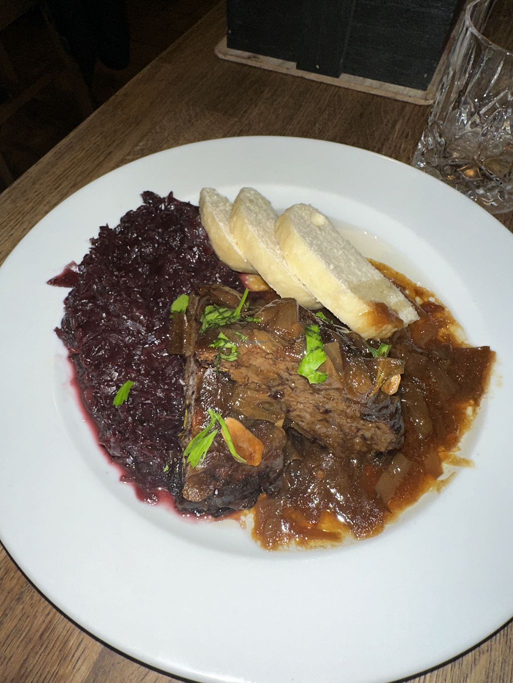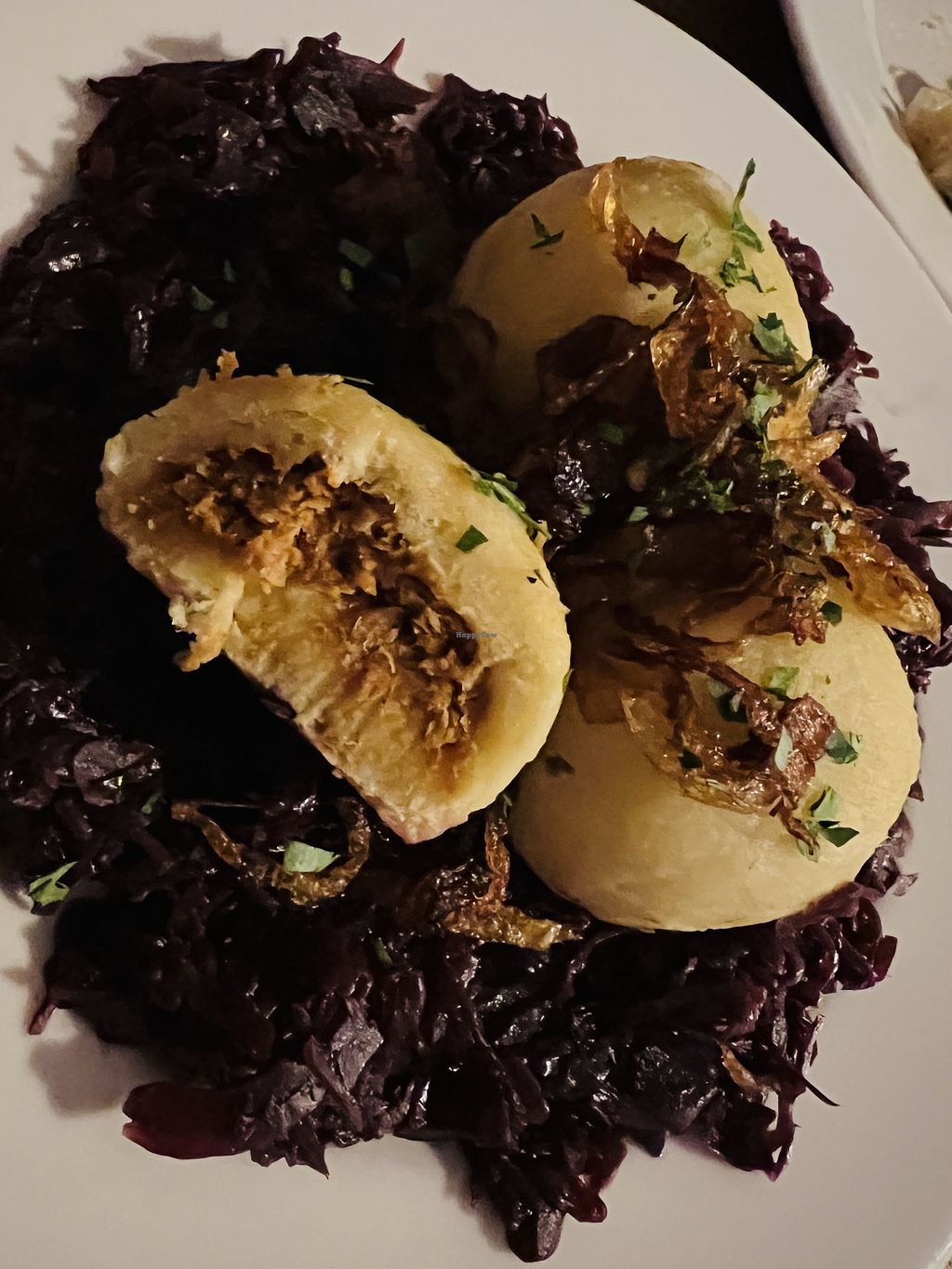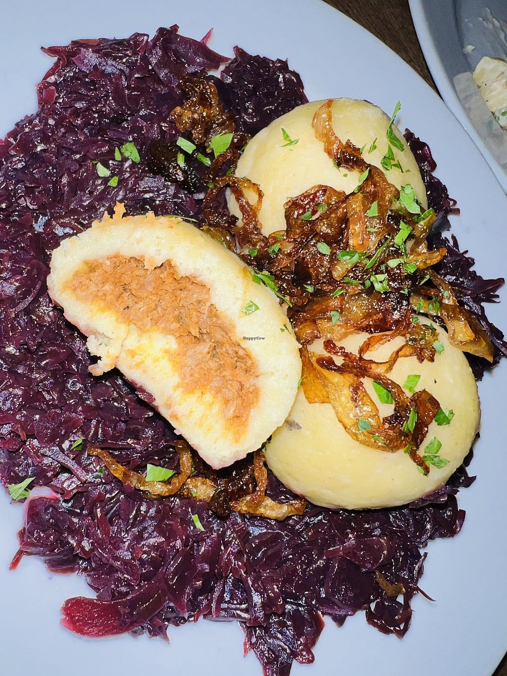 Gefüllte Knödel und „Ente“ mit Rotkohl