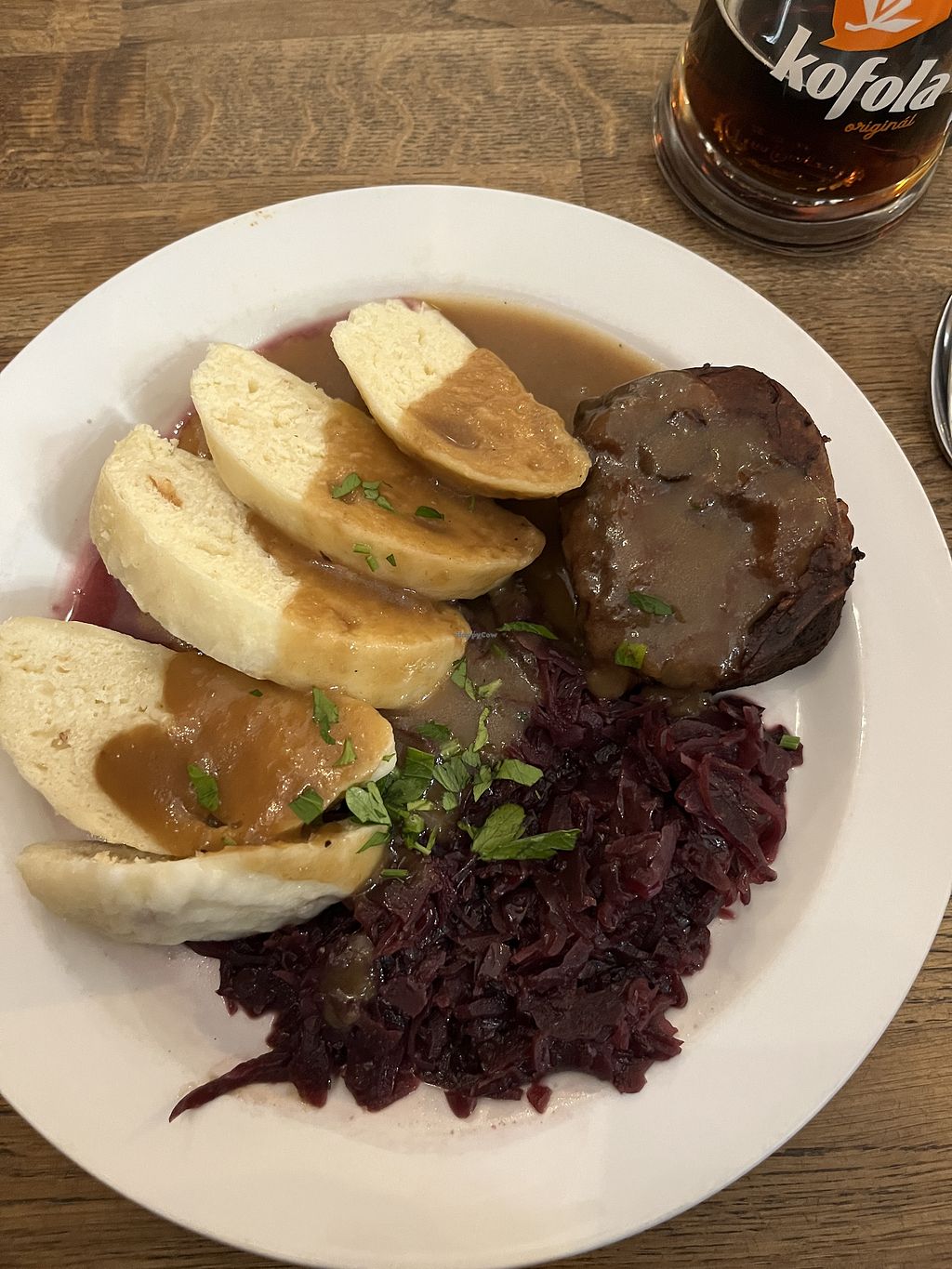 „no-duck“ with dumplings, gravy and cabbage — not their best dish, but…