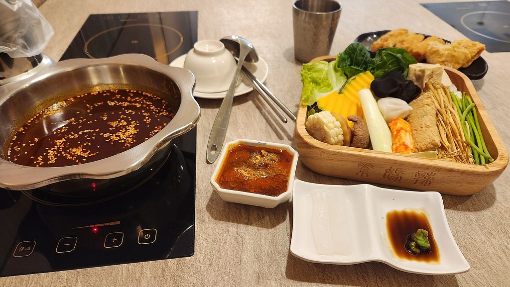 A vegetarian hotpot restaurant. Shabu Shabu, Mala, tomato, vegetable soup base. Free flowing drinks plus ice cream, soup, fries, tofu, fresh vegetables and mushrooms. Has vegan options and others that could possibly be made vegan upon request. Open Tue-Sun 11:30am-9:30pm. Closed Mon.