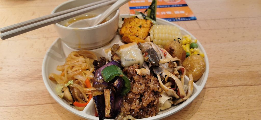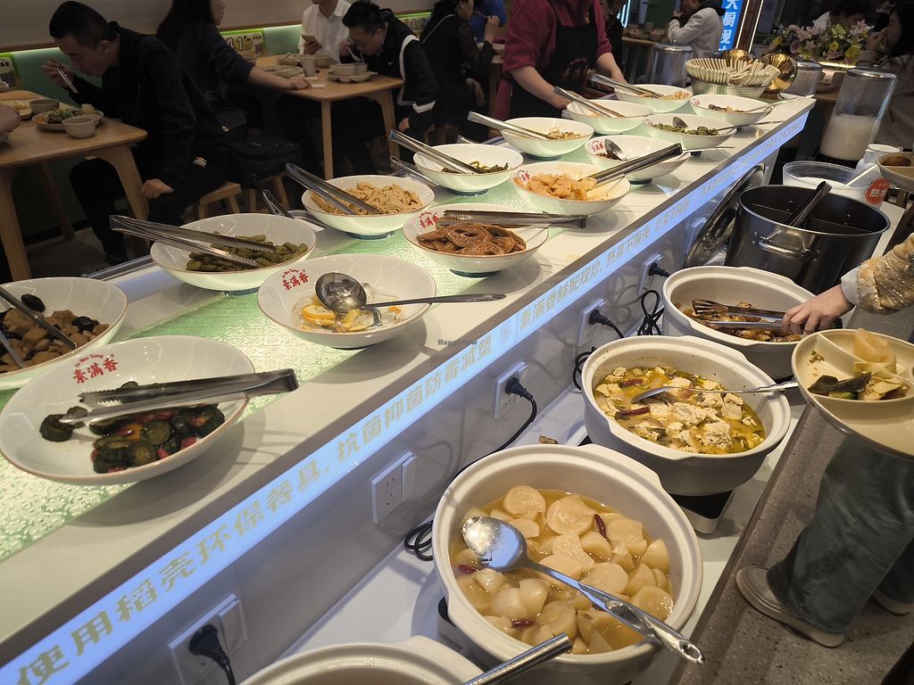Big and busy vegan/vegetarian buffet located in the city centre. They had a big variety of tofu, mushroom and vegetable dishes, as well as noodles, rice, soups and. pastry.