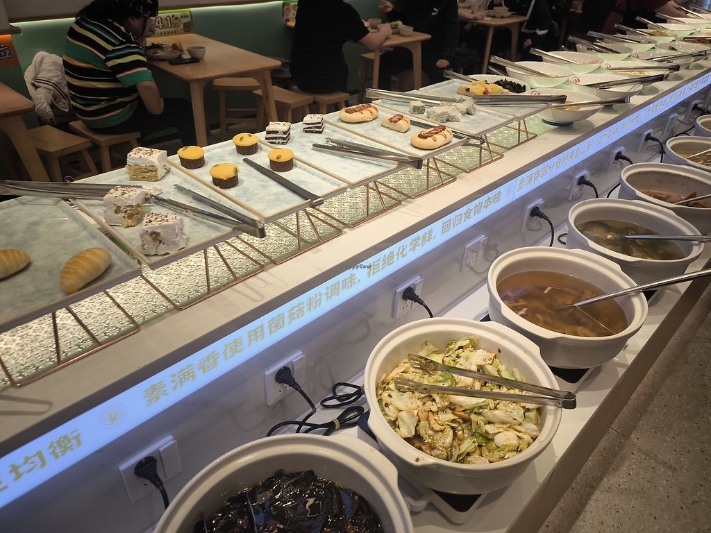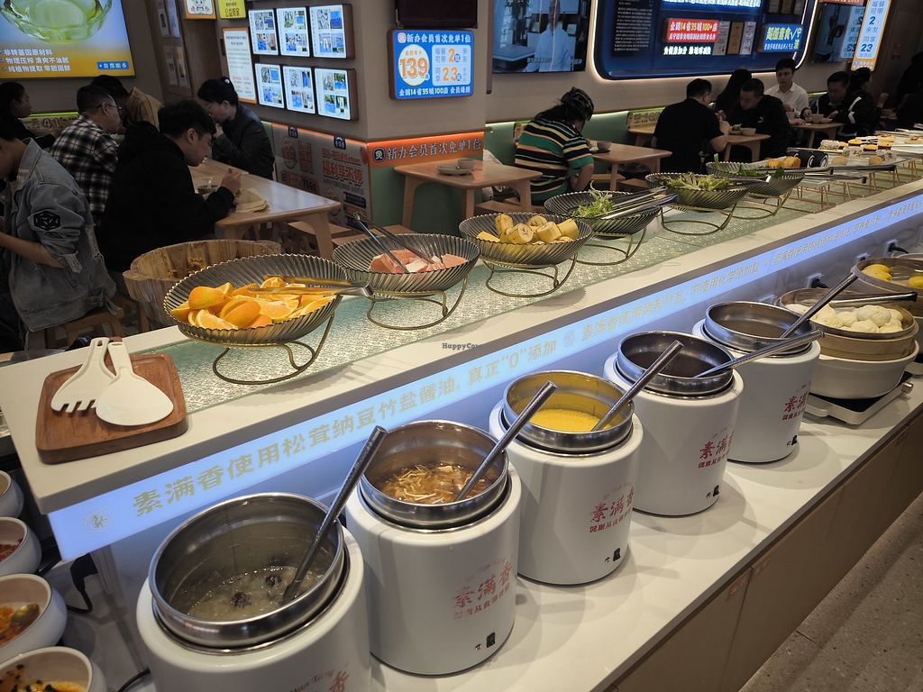 Su Man Xiang Vegetarian Buffet (福田金中环店), conveniently located right outside Shenzhen's Convention & Exhibition Center Metro Exit E, offers a variety of vegan dishes. For just 32 RMB per person for takeaway, you can enjoy a diverse selection of flavorful options, including soups, veggies, noodles, snacks and desserts. I especially enjoyed the Vegetarian Shark Fin Soup, a delightful blend of spices and perfectly cooked mushrooms. The stir-fried mushrooms and spicy tofu are also highly recommended. With friendly English-speaking staff and a wide variety of dishes to choose from, Su Man Xiang provides a satisfying and affordable vegetarian dining experience.
