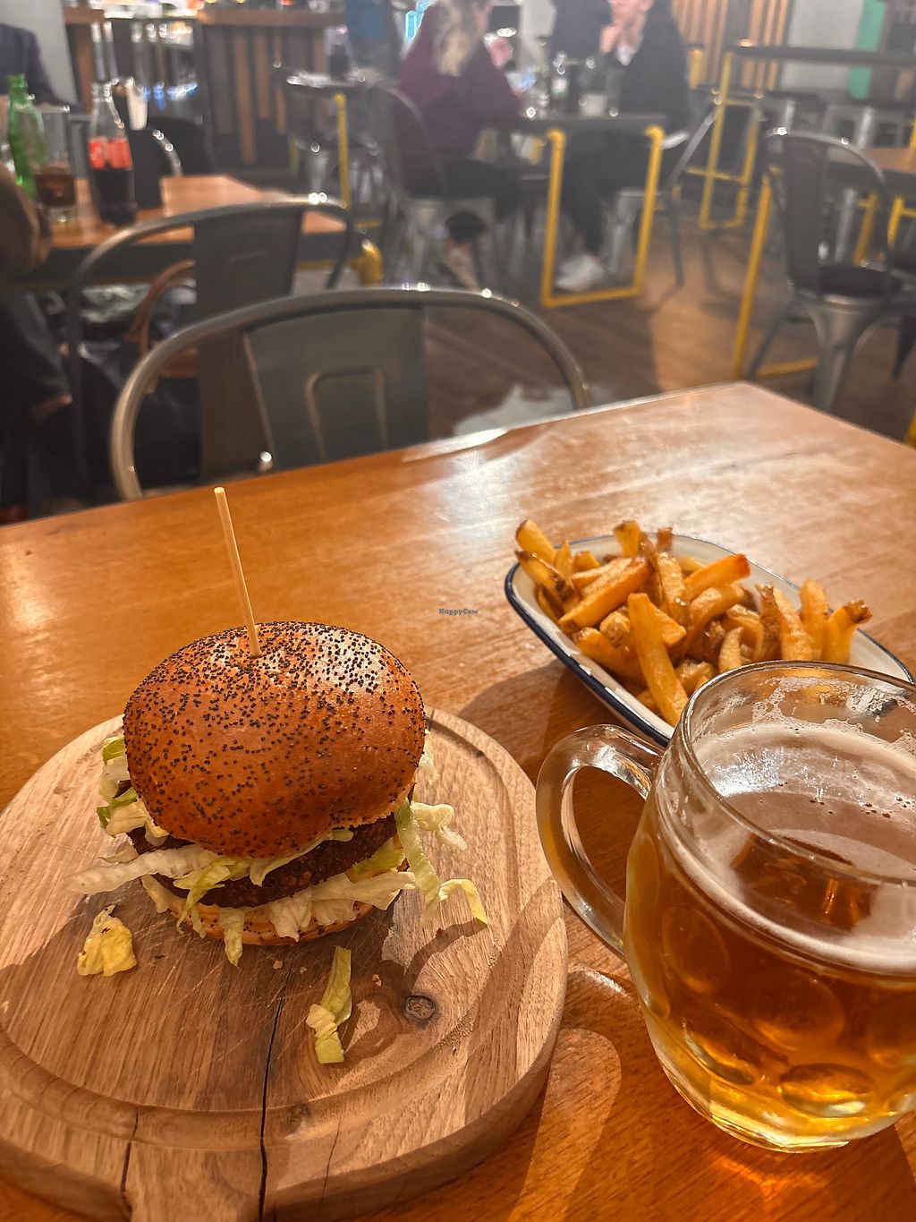 The menu has two vegan burgers that can each be single or double or swapped for beyond burger. The burger is fine but not mind blowing - I went when it was not busy and I could immediately tell the burger was indeed vegan. 12€ no fries