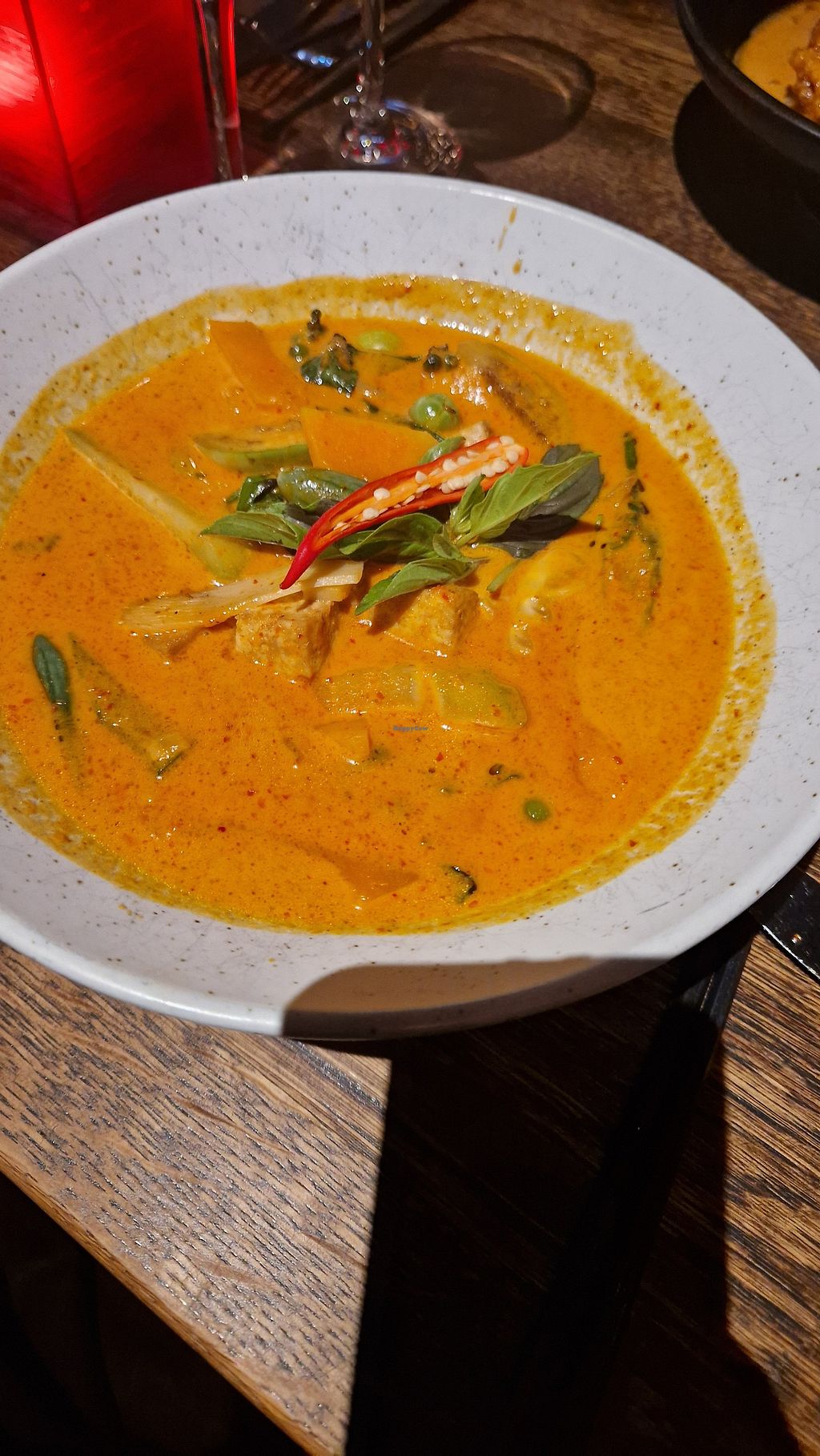 I loved this place, fancy yet relaxed atmosphere and not too expensive. They also have a seperate vegan menu. I had the 3-course dinner option with the Vegan crispy “duck” Massaman as main. I was blown away by it, so creamy and rich in flavour, “ duck” with perfect texture and with tasty potato wedges as well. Probably the best Massaman curry I’ve had so far. The vegan salad as starter was just ok while the strawberry mousse with lime and basil ice cream was really yummy.