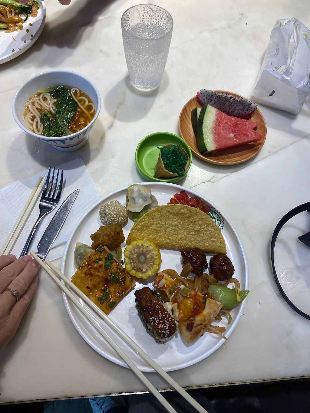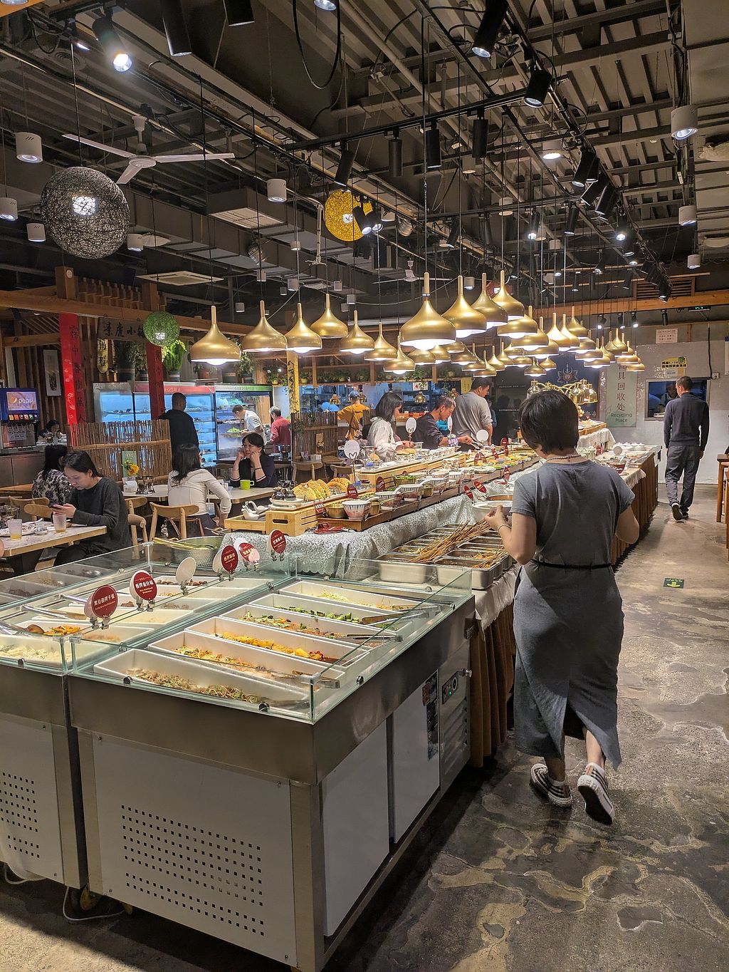 This is hands down the best restaurant I have ever been to as a vegetarian! Aesthetic, lots of options, Chinese and Western Food, really really tasty!! I will never forget this place!! They have barbecue, hot pot, cold dishes, main dishes, salad bar, fruit bar, sushi, soups, ice cream, slushie, different drink options! Just incredible!!! I really liked the pickled radish, sausage, vegan eel sushi, plum bean and the Oreo cake!! (they have a western toilet!!)