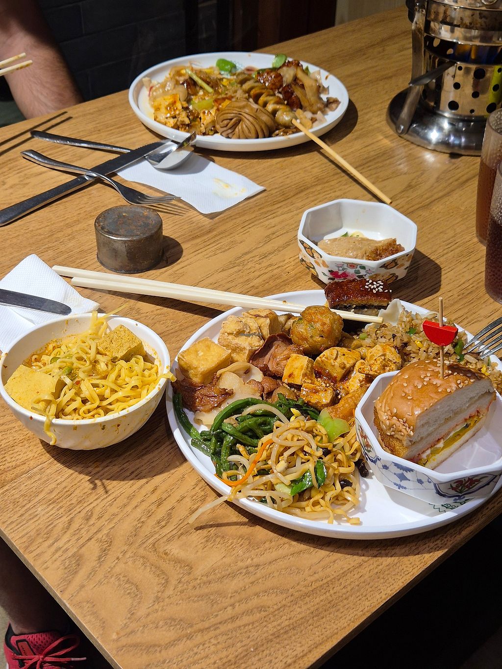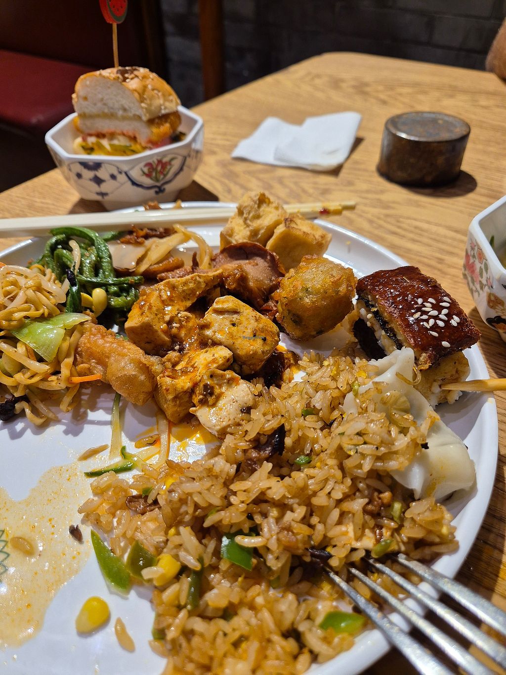 Definitely worth visiting here for the sheer volume of vegan food! The range is just insane. Tried little bits of lots of the dishes….sushi, mock meats, veggies, salads, bbq skewers - the list goes on and on. They have a desserts and drinks bar too with a decent coffee machine. To be honest, none of the dishes were amazing, lots of nice food but nothing really blew me away. Still an amazing experience but go for the variety rather than the quality.