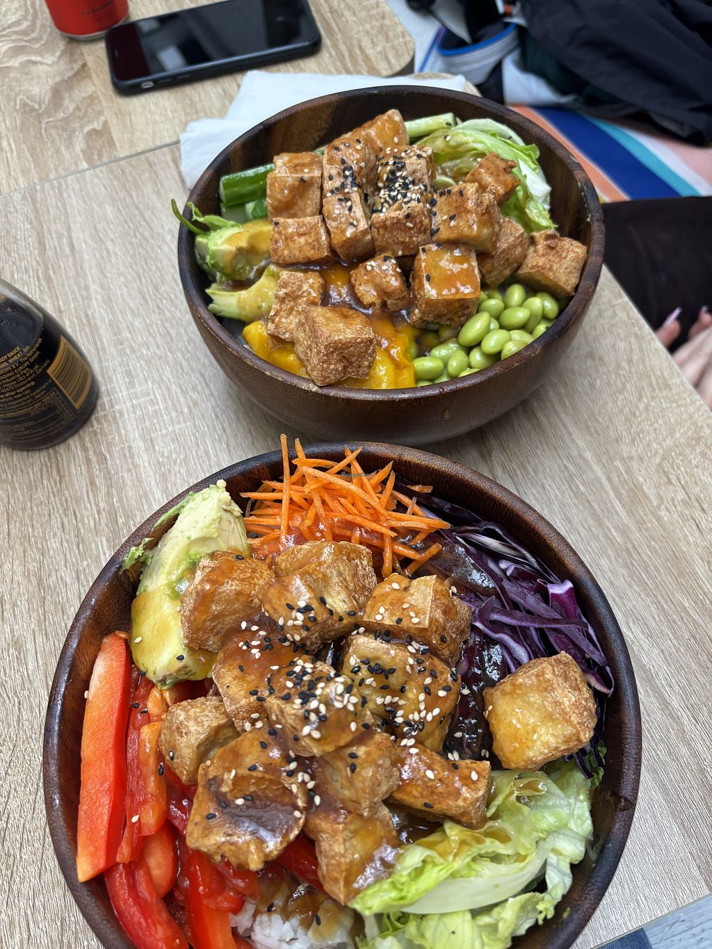 You can choose between poké, salad bowl or a big piece of sushi (like a burrito). You can make your own burrito or poké. But the only one vegan protein is tofu (plain or crunchy).