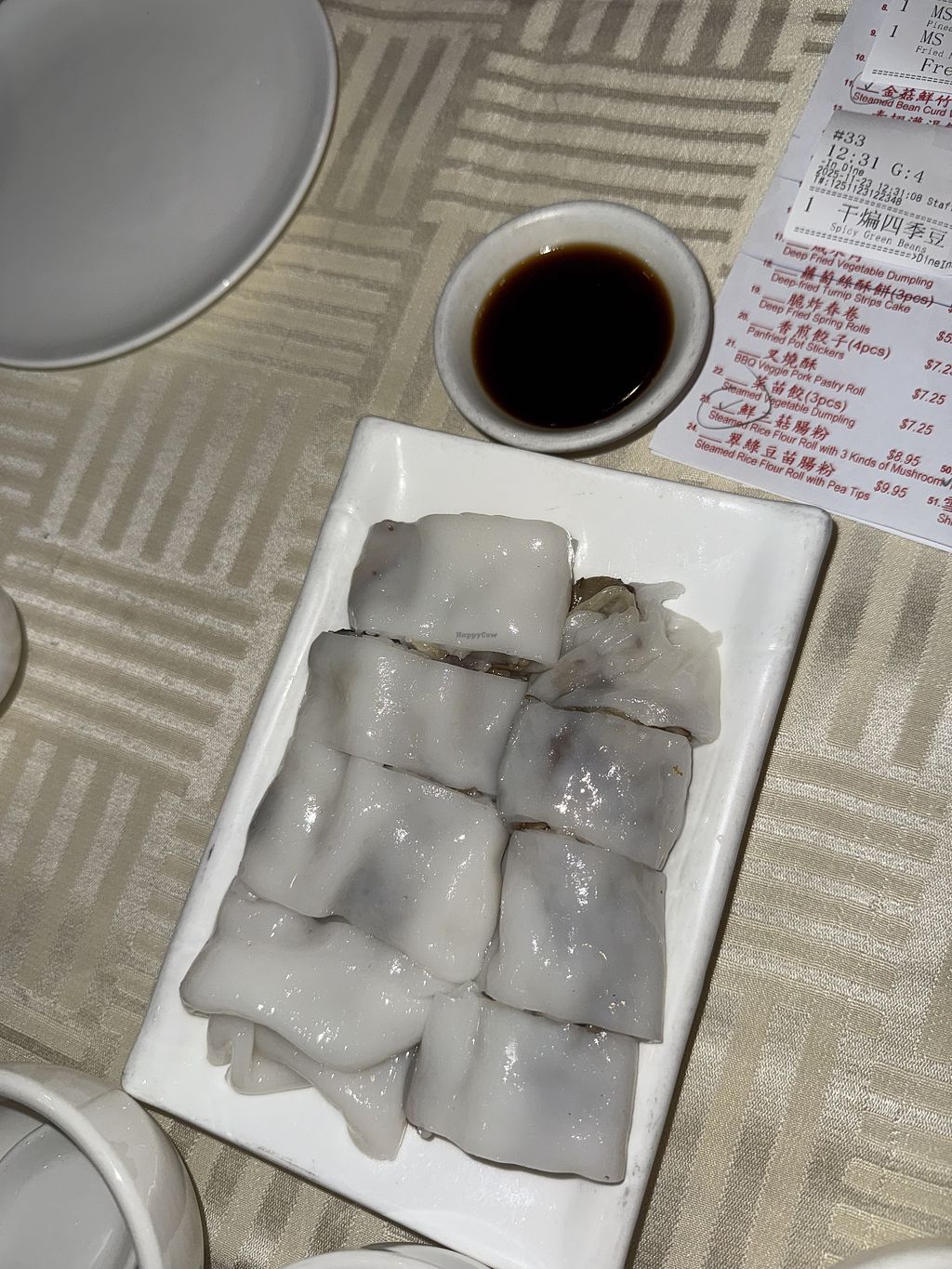 Delighted to find this vegan authentic Chinese restaurant serving dim sum from 11am-2pm. Came for dim sum and found most of the other diners speaking Cantonese as well as way staff speaking Cantonese and mandarin as well as English (a good sign). Would recommend getting the soy sauce chow mein noodles, the lotus leaf wrapped sticky rice, fried taro puffs, steamed fun rolls. We also saw some taro cake and turnip cake that looked amazing. Friendly staff and authentic Cantonese dining experience. Would like to come back and try non-dim sum dishes as we did not like the shrimp dumpling, siumai, or soup dumplings (xiao long bao).