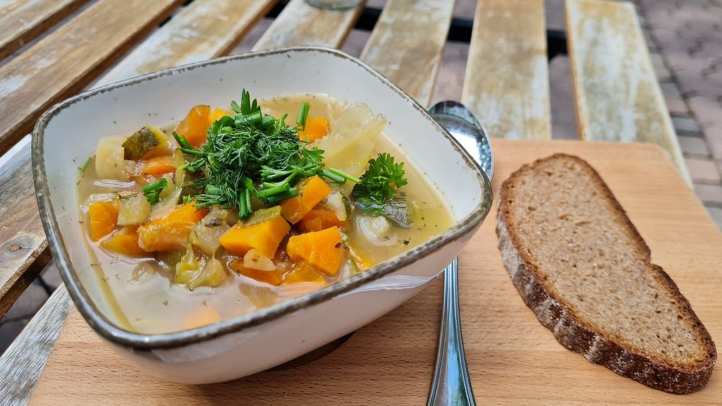 Angenehmes Ambiente, z.B. um eine Pause zu machen und dort die ZEIT zu studieren. Die Suppen sind leicht, man kann auch Nachschlag und eine Scheibe Brot dazu bekommen. Es werden v.a. saisonale Gemüse aus der Region verwendet. Im Sommer kann man draußen auf dem Platz an Holztischen Sitzen. Für den großen Hunger sollte man besser etwas anderes wählen ;)