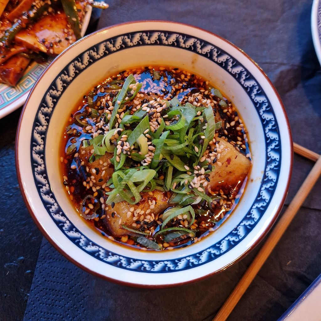Read moreThere were plenty of vegan options on the menu. We ordered five courses, fragrant tofu, bang bang tofu, daikon salad, ambassador cucumbers and tiger skin peppers. All of the dishes were interesting and tasty, and there were several new flavors for us! Especially the fermented beans with the tiger skin peppers and the daikon salad were delicious.