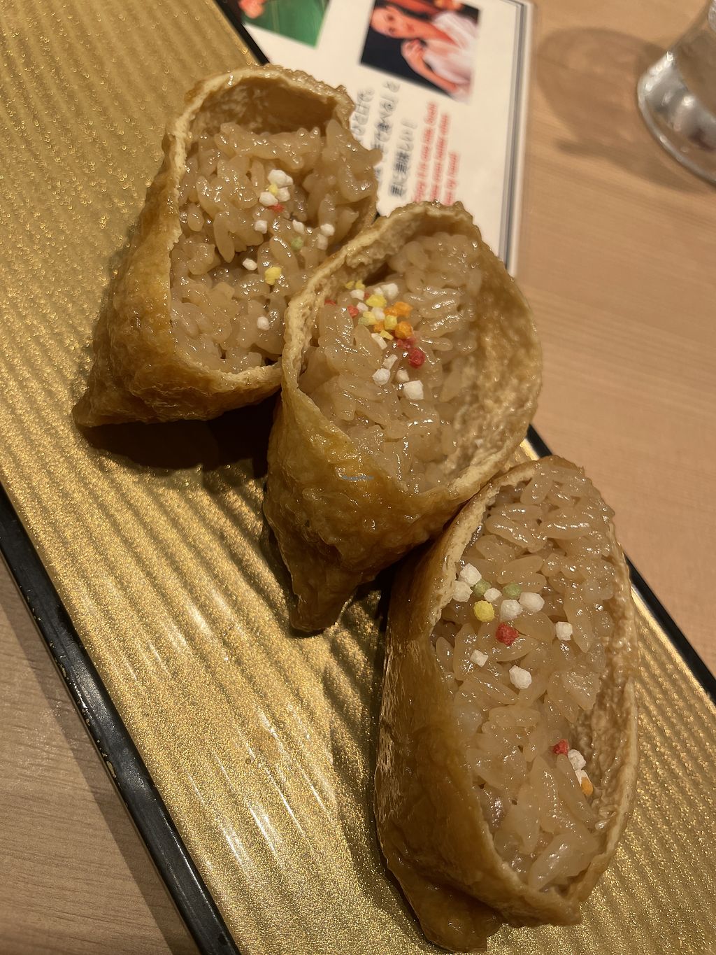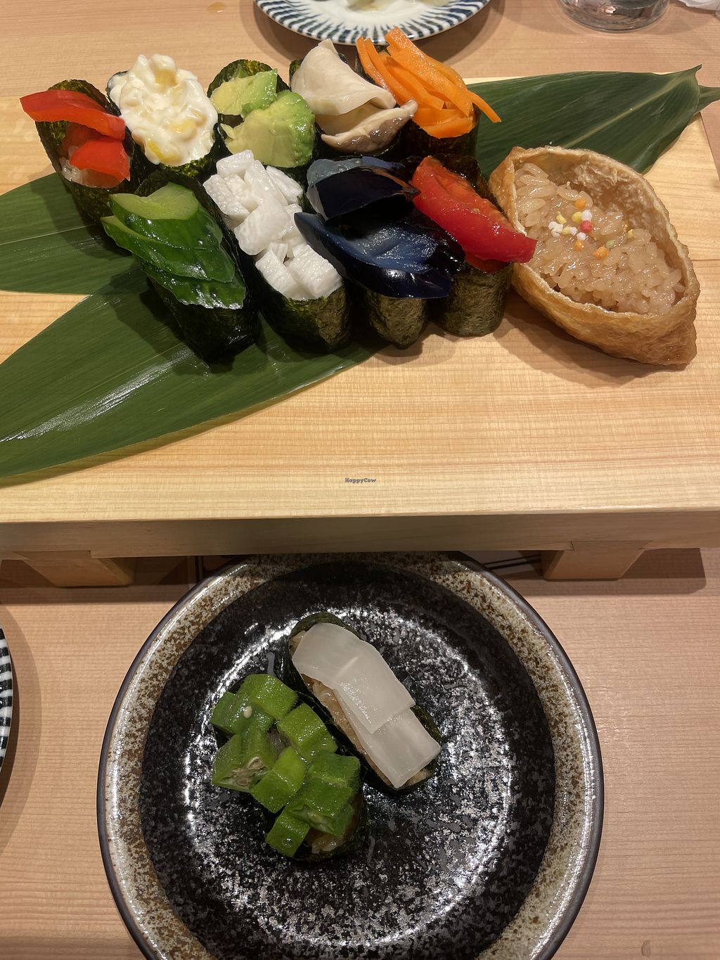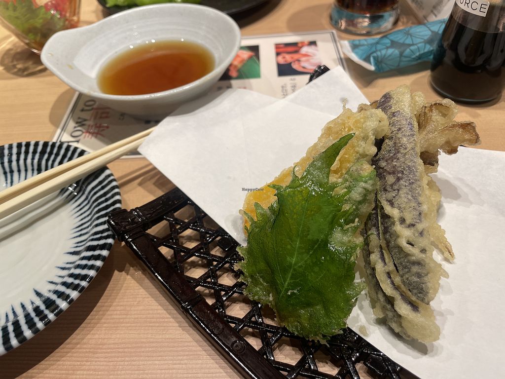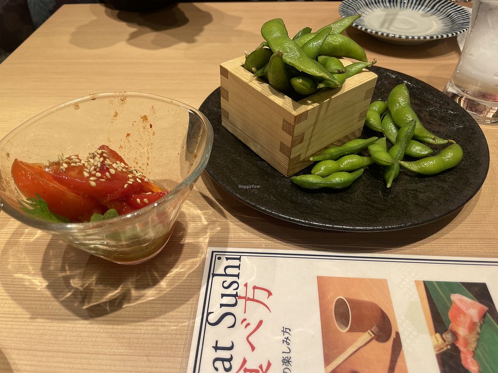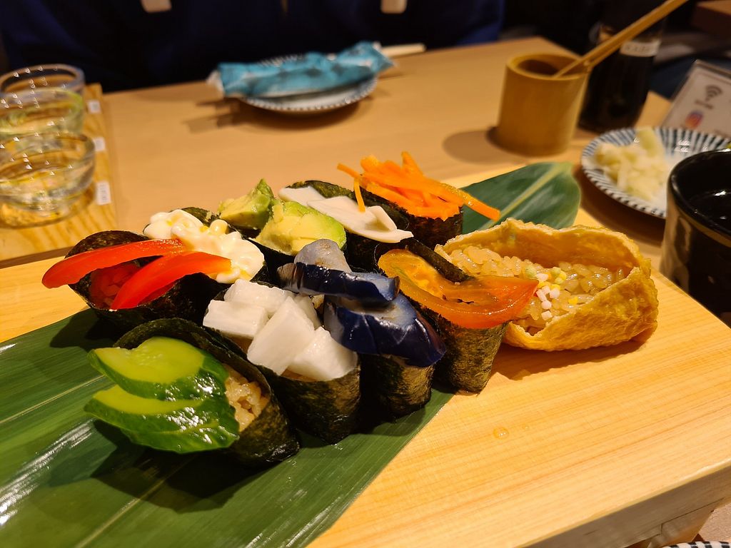 In our three weeks of vacation in Japan, this was the only sushi spot which served meat and vegan options that had a nice Sortiment of vegan options with about 12 different sushi’s and a fully vegan plate option. Also had amazing vegan sides.
