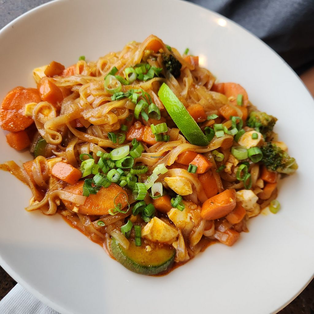 We got a veggie roll, fried rice with no egg and pad Thai with no egg and added tofu. The fried rice is really good. The other two are just ok but its nice to have options!