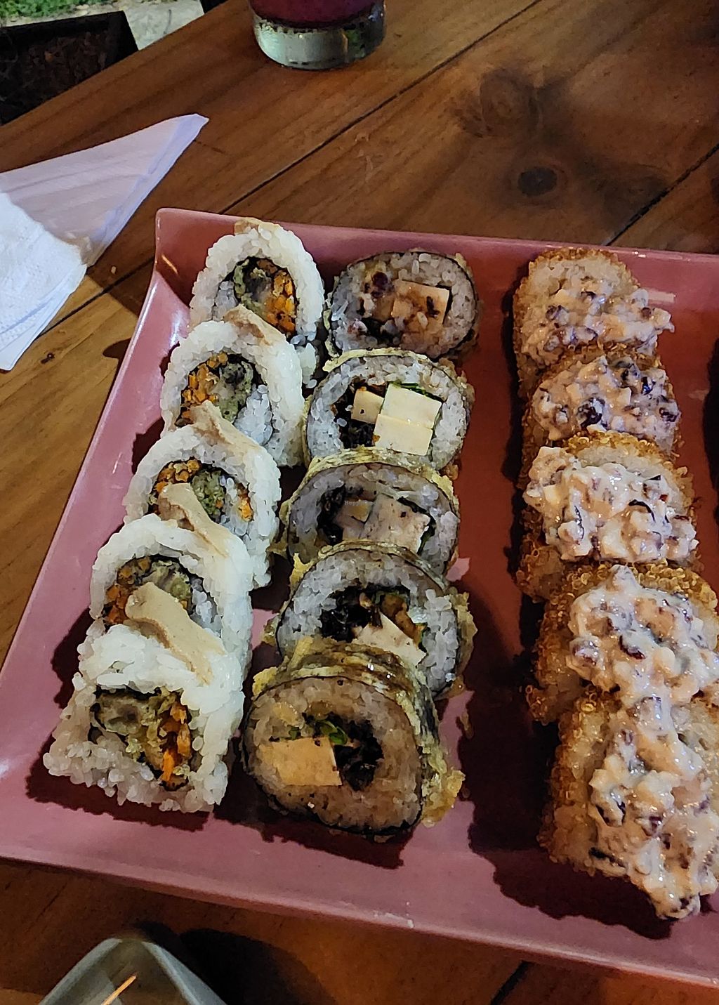 Las opciones veganas en el menu son amplias, probé los tres sushi veganos y eran muy ricos.