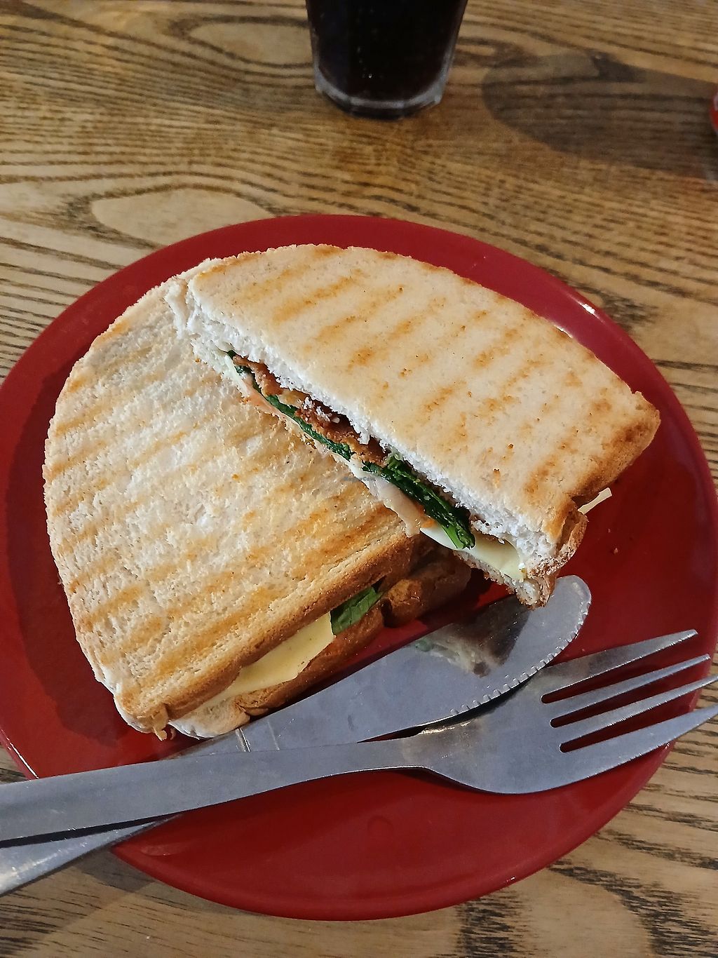 Read moreI had a vegan bacon, cheese and spinach panini. I asked to swap the crisps and salad for coleslaw which they kindly did.