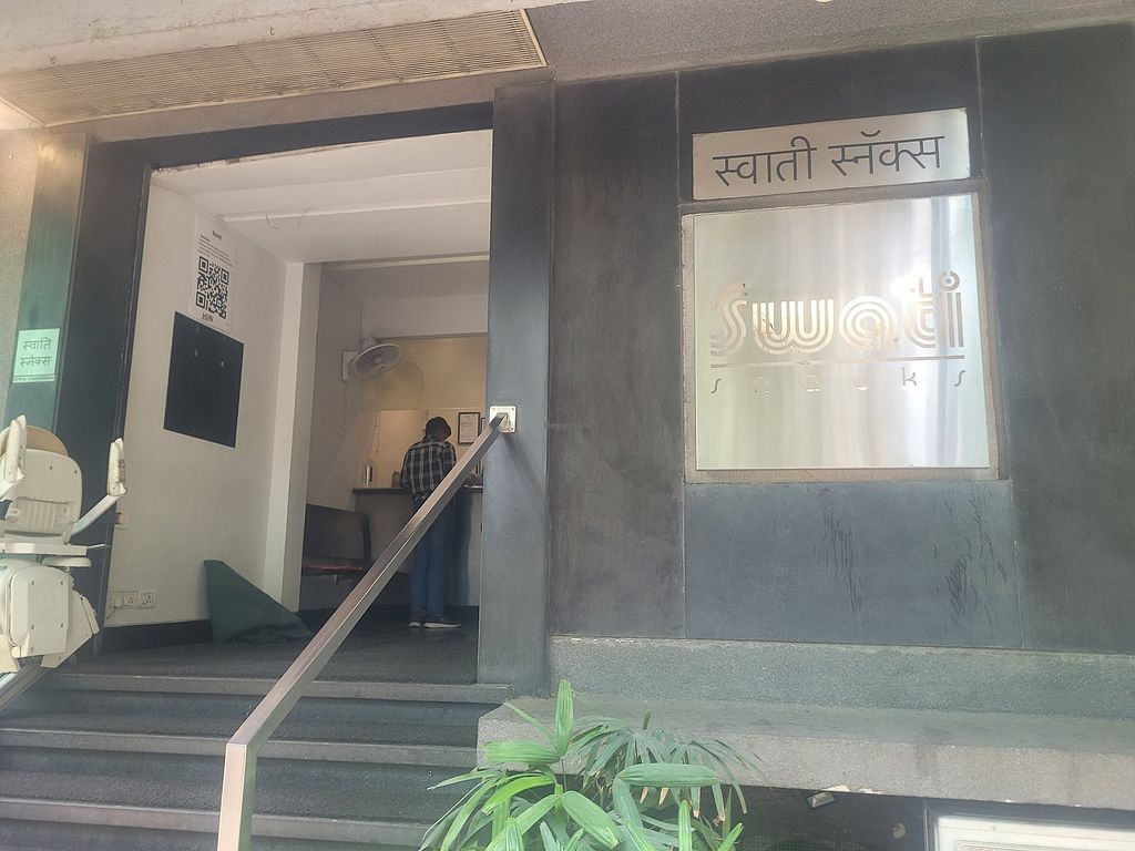 Renowned, vegetarian casual dining restaurant. Branch of Swati Snacks - Tardeo. Confirmed vegan options include pani puri, sev puri, bhel puri, panoli, undhiyon, thalipeeth pitla, idli sambar, sada dosa, rava dosa, mysore sada dosa (ask for it without butter), makai handvo, and bedai roti. Other dishes could be veganised on request - ask staff. Open Mon-Sun 11:30am-10:30pm.