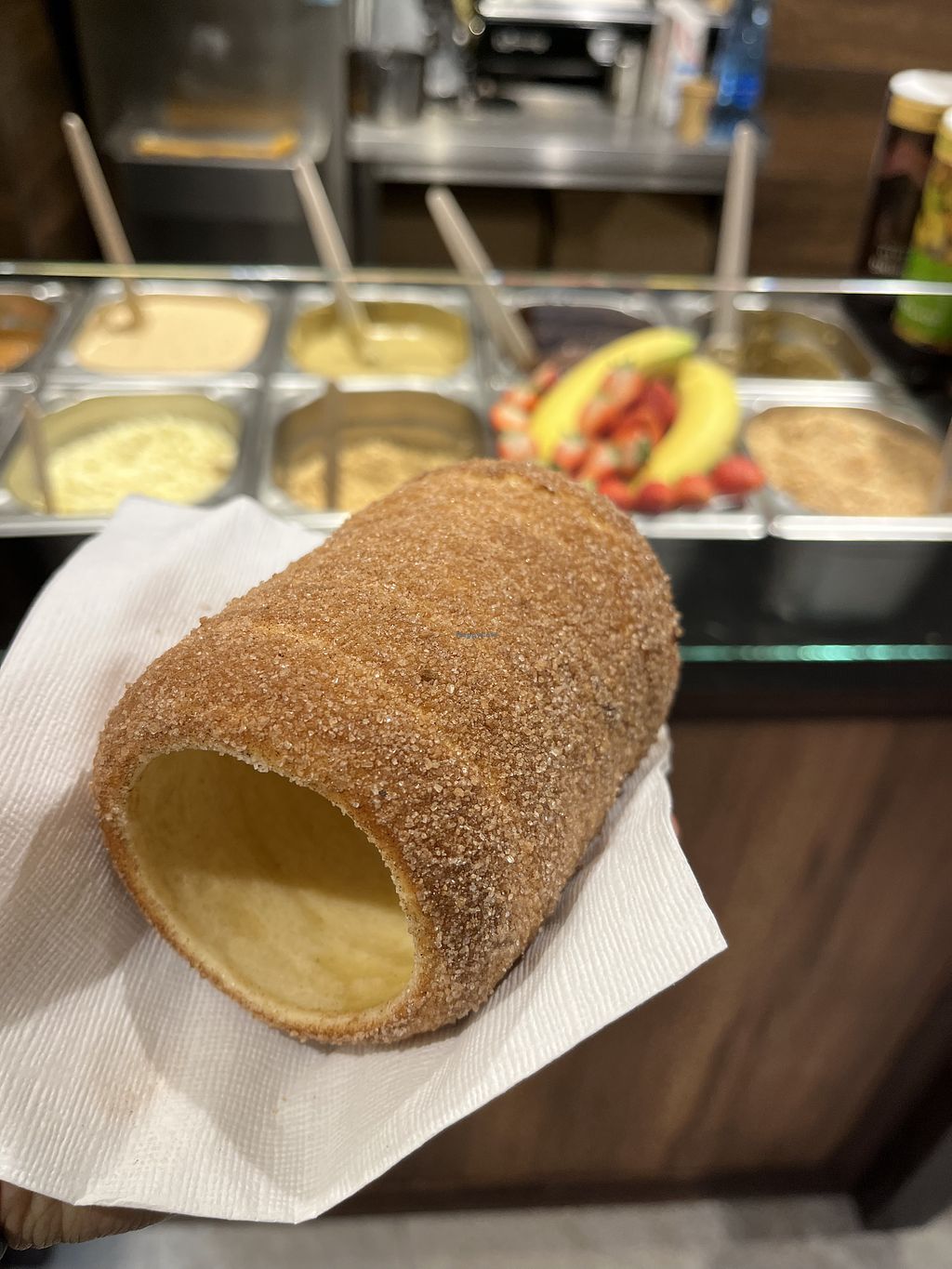 Edit: I already ate some when I took the photo, the trdelník is bigger when you get it.