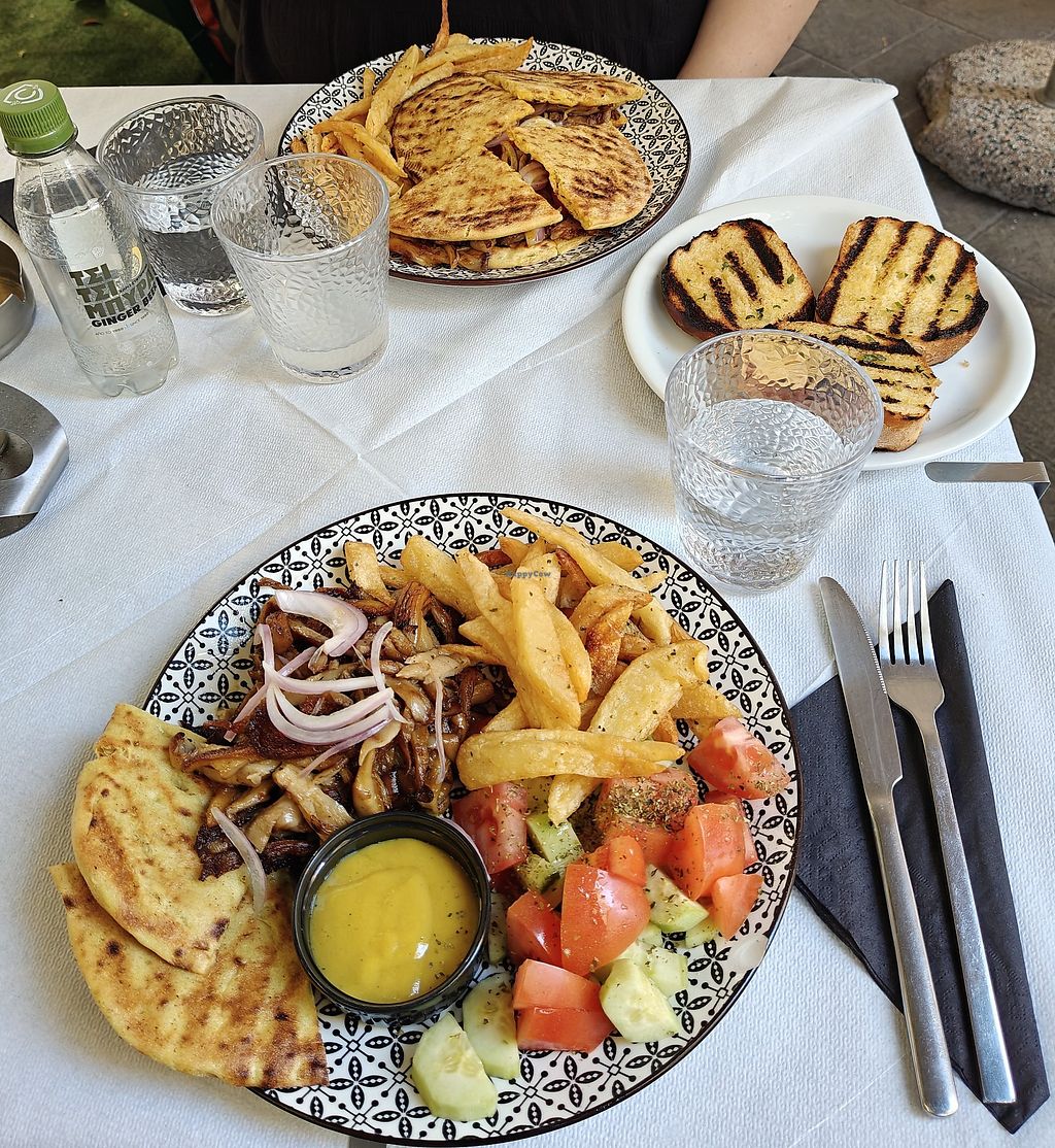 Wir haben zwei Gyros Teller mit Pilzen bestellt und sind begeistert. Die Pommes sind außen kross und innen weich, die Pilze, als Gyrosersatz, waren sehr lecker und die dazu gereichte Souce hat mit ihrer Süße das Ganze perfekt abgerundet. Auch der Preis ist, im Vergleich zu anderen Restaurants, echt gut. 13€ für einen prall gefüllten Teller.
