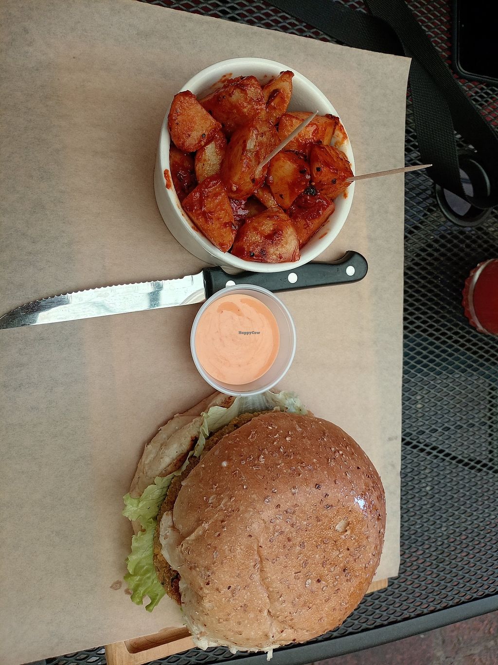 Lovely outdoor seating and delicious all vegan food! The tacos and burgers are great and so are their cakes!