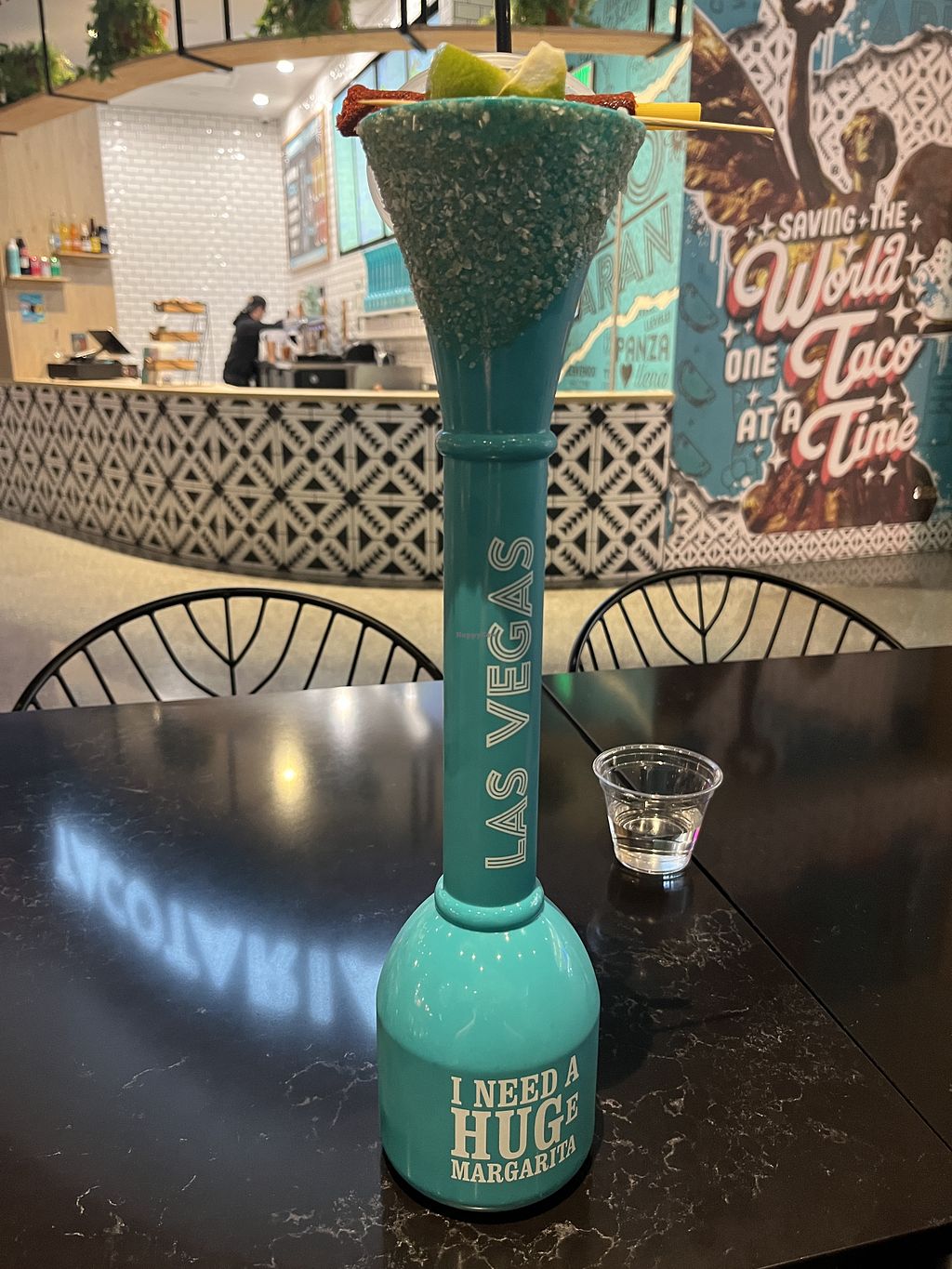 I had the fish taco, deep fried potato taco, corn and a massive margarita in a novelty cup. I didn’t love the coating on the corn, but loved everything else. This branch is in a food court, so the vibe isn’t as great as standalone branches, but this is still one of the best vegan spots on the Strip.