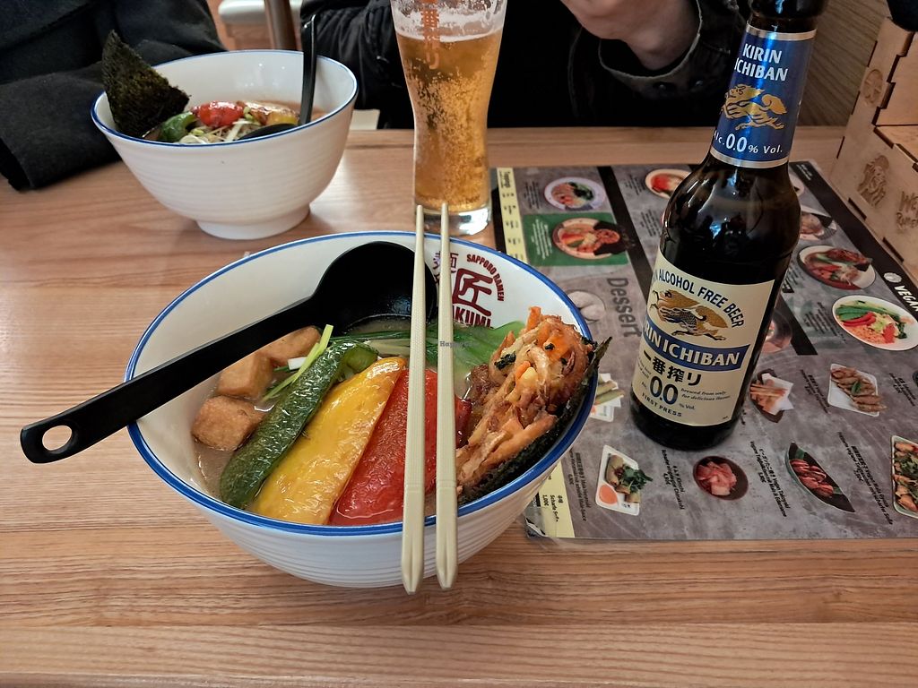 There are many vegan options. Half the menu is vegan, and the other half is with chicken. I tried the creamy white vegan tan tan men ramen, and it was very nice. The people were very friendly. But I think it is a bit expensive (I paid 18€ for my ramen).