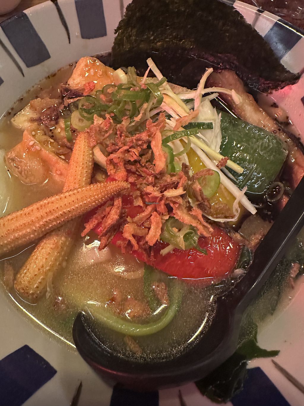 Really tasty vegan ramen broth. I was surprised how tasty this was given that this is a chain. Highly recommended! The spicy vegan miso ramen was delicious 🙂