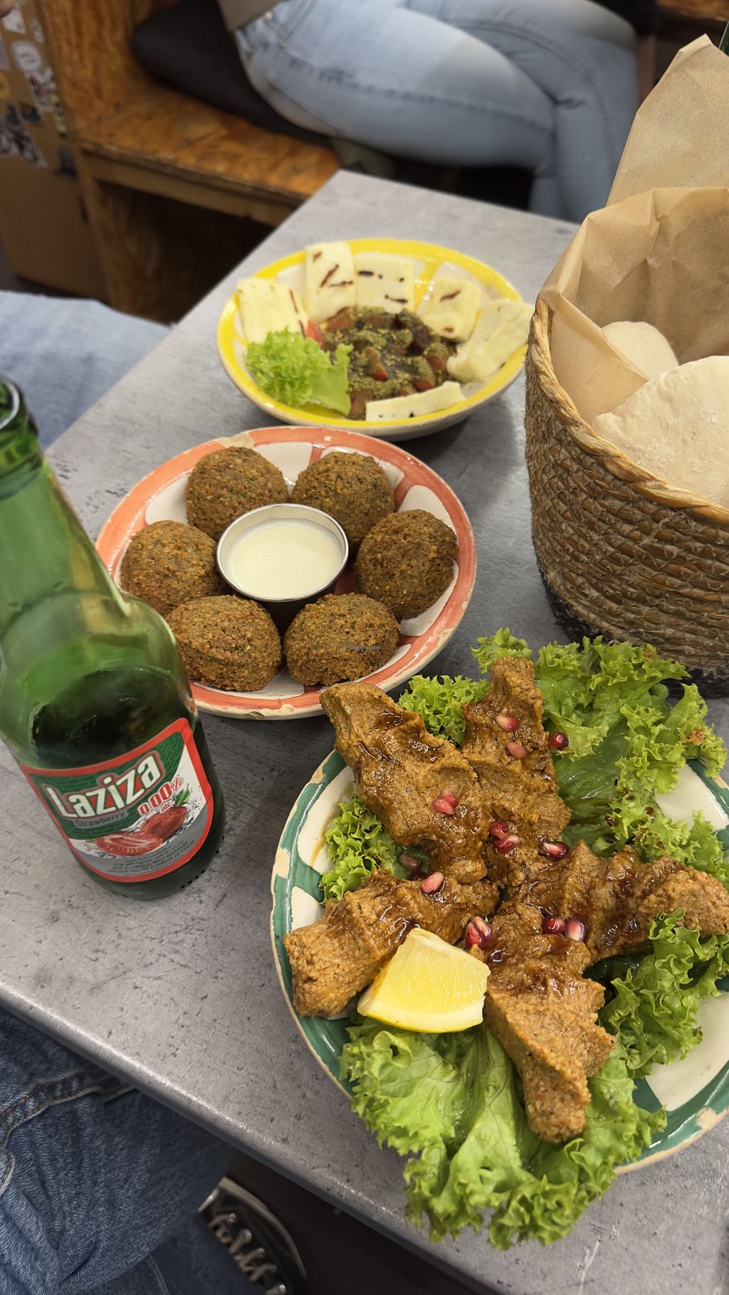 Coming from the UK, where we suffer through terrible bread, the pita here was excellent. The falafel was crisp, well-seasoned, and fresh. But the Muttabal? Easily the star of the show. Smoky, rich, and topped with pomegranate seeds that gave it this unexpected sweet-sour twist.