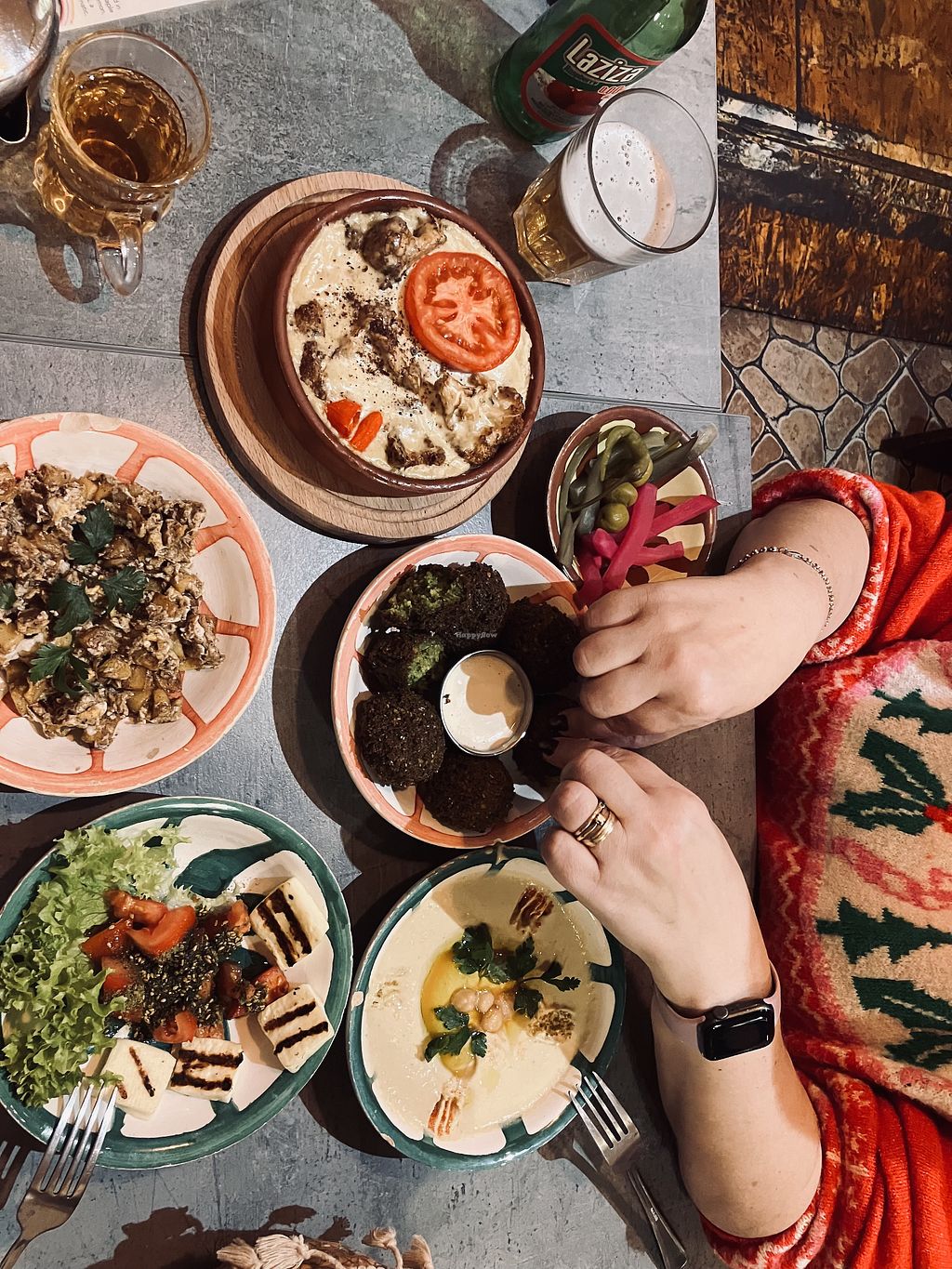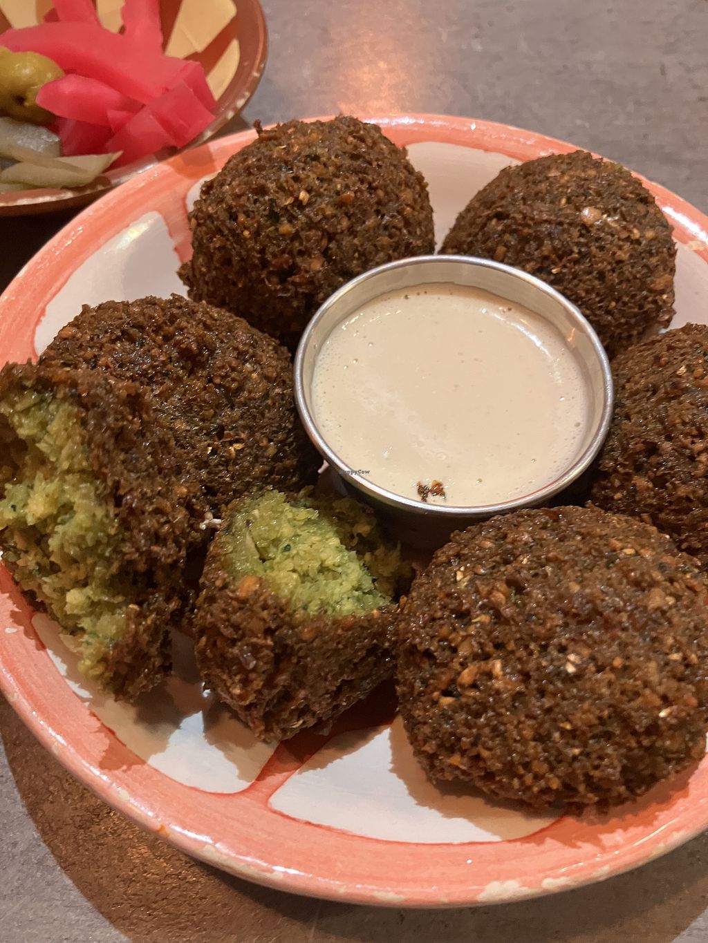 Kanapki z falaflem pyszne i w dobrej cenie, talerzyki z pastami też bardzo dobre. Wszystko mocno słone, mi to akurat smakowo pasuje, ale później bardzo chce się pić 😄