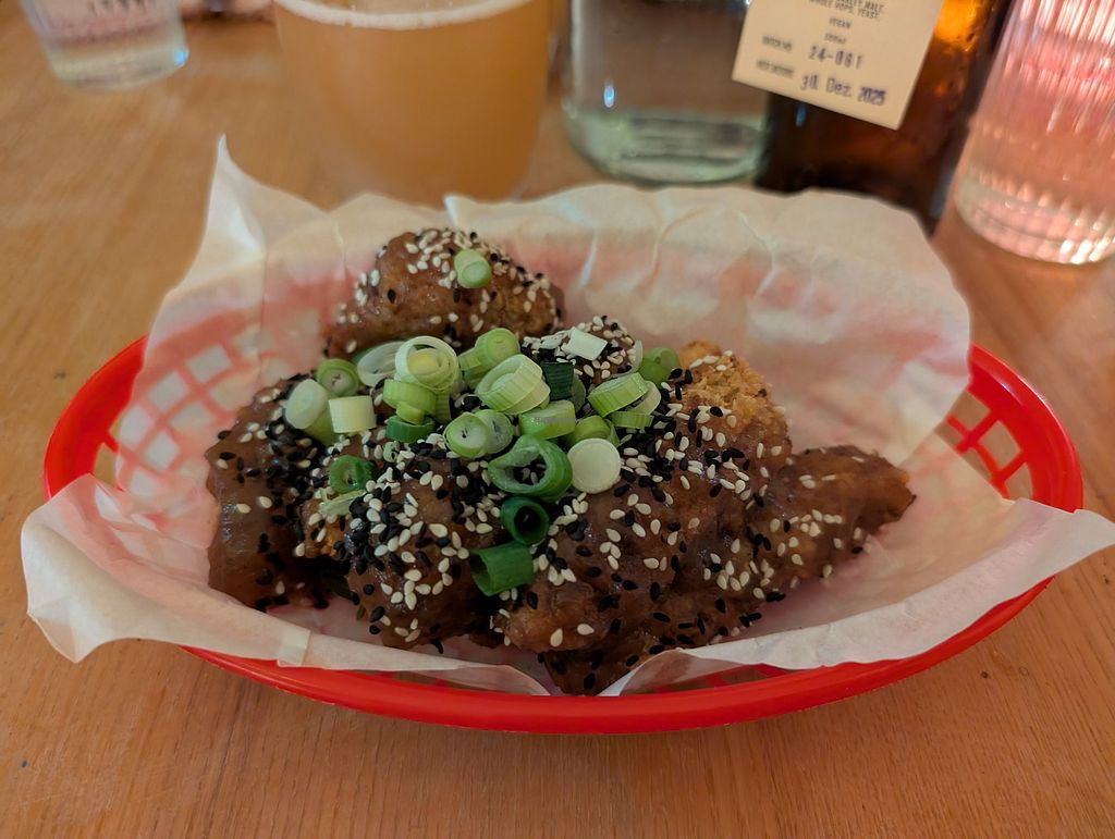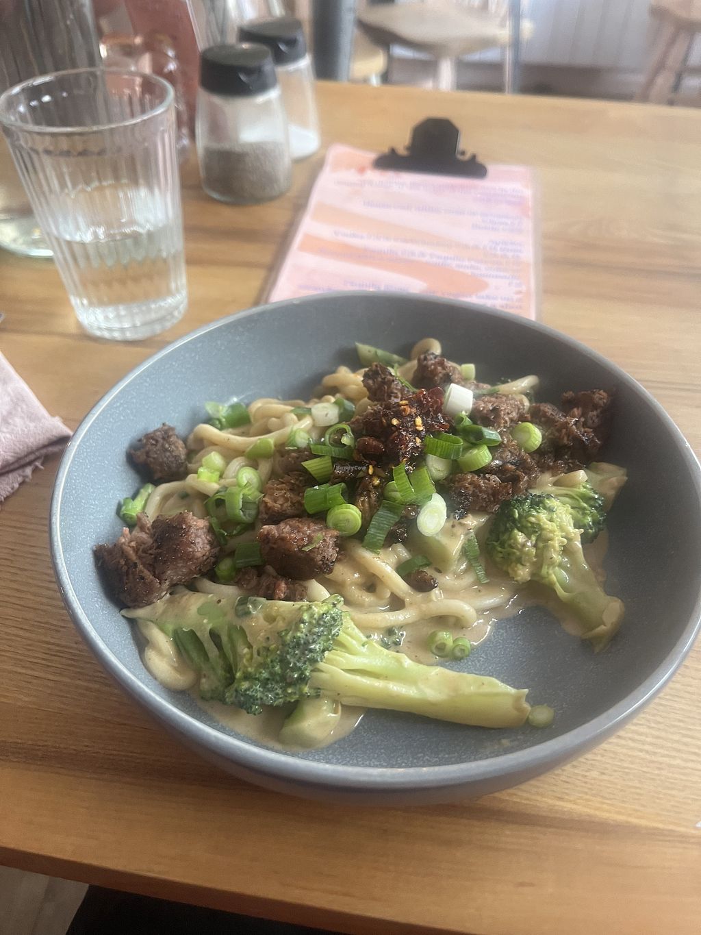 Amazing food and great atmosphere. All the food we had was really tasty. Sadly I forgot to take a photo of the mains. We had seitan wings, mini tacos, dan Dan noodles and a chicken burger. I wish I went for the noodles my partner had. Good size portions.