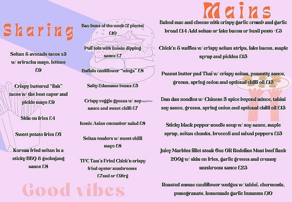 Fantastic range of vegan treats - seitan burgers, mac n cheese, loaded fries, and desserts to die for!