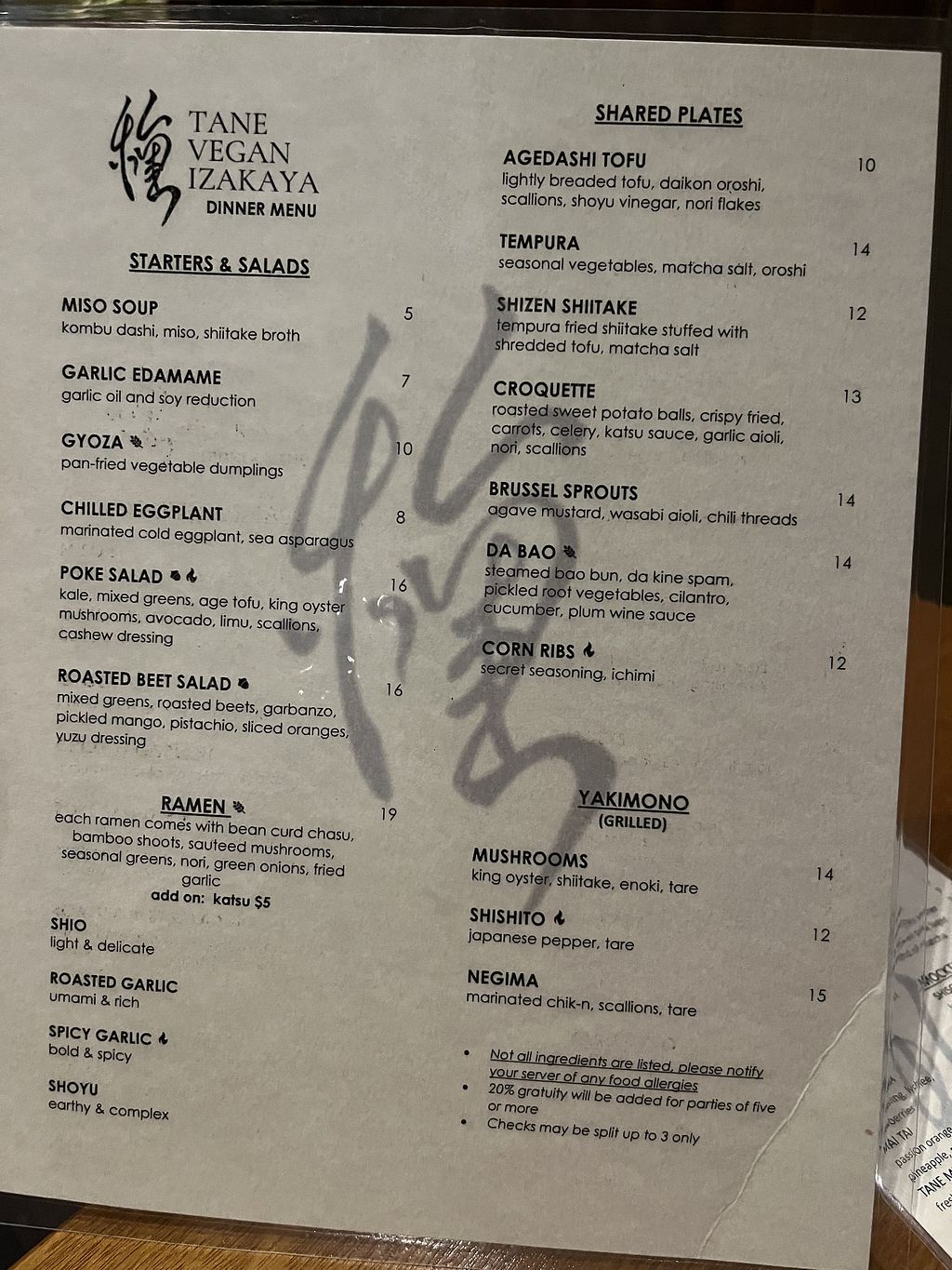 Went recently for a family outing and did not care for the condescending vibe. I guess I'm getting too old to appreciate the too-cool-for-school sass. Spicy ramen was meh though spicy as advertised. The vegan options available have grown in Honolulu and this one no longer is a stand out, unfortunately. Hopefully they place will reconsider bringing back the friendly aloha vibe that it used to have! Also, not all vegans are young! Please respect the elders among us. You'll all get your turn, too.