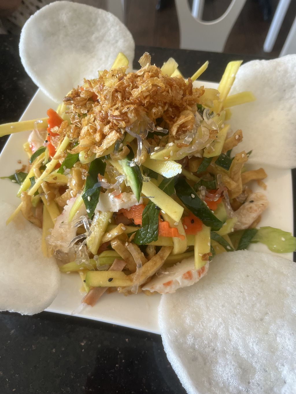 Most things on the menu were vegan. The mango salad was my favorite thing we ordered. We also had the pineapple fried rice and the string beans and “beef” which were both delicious. Not sure if they are related but the menu was very similar to Green Lotus.