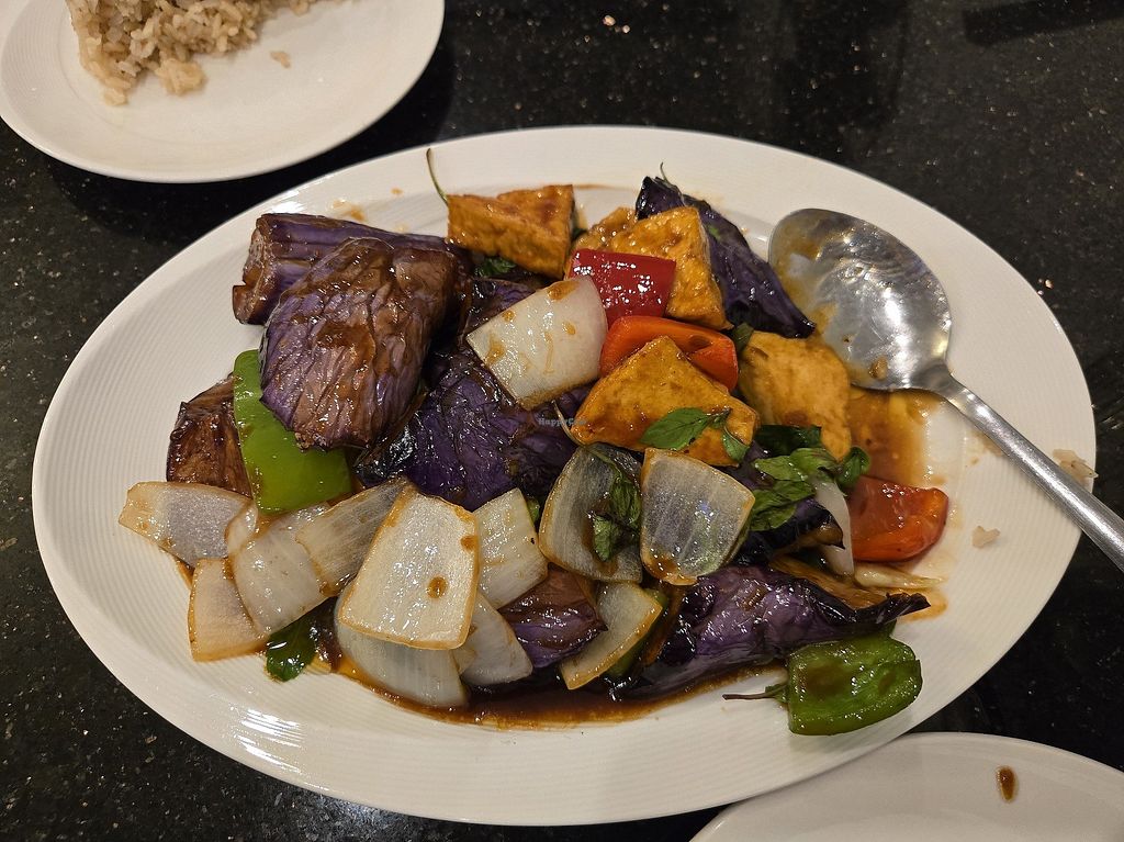 I came because they are open on Christmas and have good reviews. The menu has so many choices - almost all include fake meat, fairly light on veg for a vegetarian place. I had pineapple fried rice (good, but I’d like more veg in it), and stir fried veg (w/tofu & fake meat). The stir fry was swimming in a sauce that was too sweet and too salty for my taste. Overall the food is good (but not exceptional for me). Nice dining room and attentive and fast service. I don’t agree with the review that says huge portions (I would say the portions are usual size?)