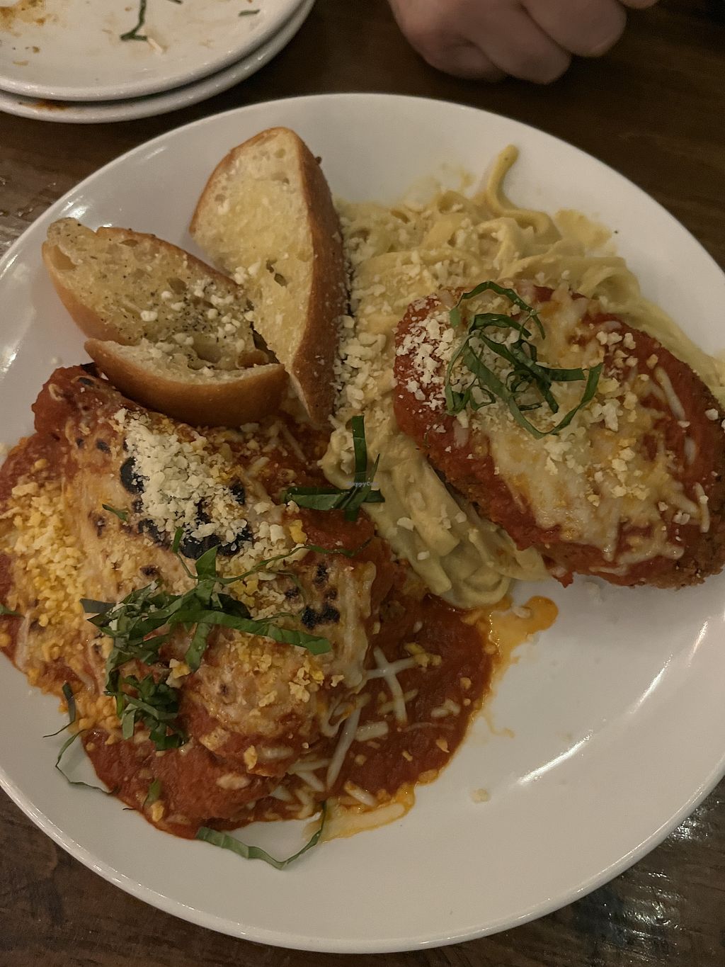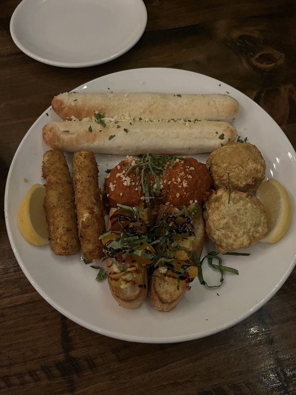All vegan Italian restaurant and wow. We had the taster entree plate with lots of bits on it, my partner had a pizza and I had the main with chicken parmigiana, Alfredo pasta, lasagna and a side soup. I wanted to try everything. The food was delicious and the portions huge - we had enough leftovers for another full meal.