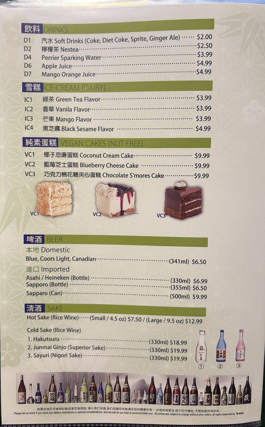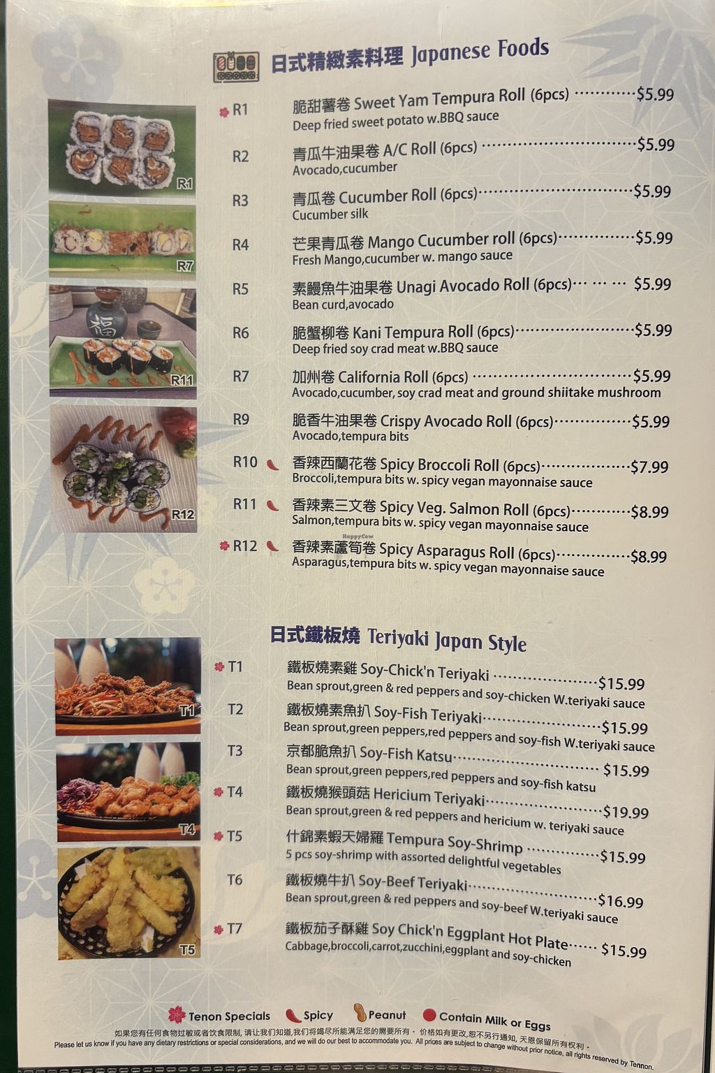Japanese cuisine vegetarian restaurant. Offers bento meals and sushi rolls. Or choose all-you-can-eat deals. Open Mon 11:00am-10:00pm, Wed-Sun 11:00am-10:00pm. Closed Tue.