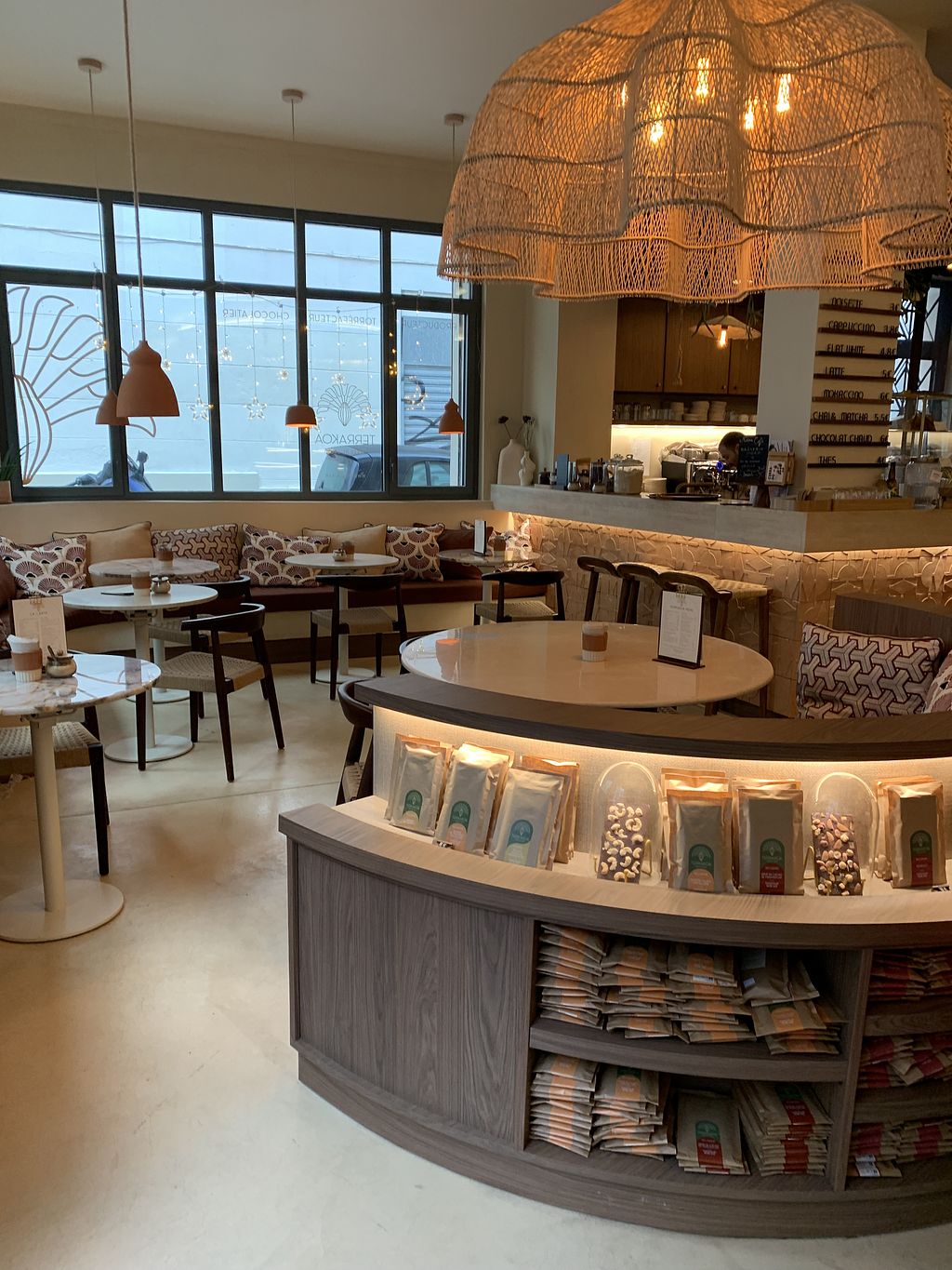 Fantastisch decor, leuk geholpen en een heerlijk drankje gehad (half koffie en half vegan chocolademelk met tahini). Leuk om weer een keer verrast te worden.